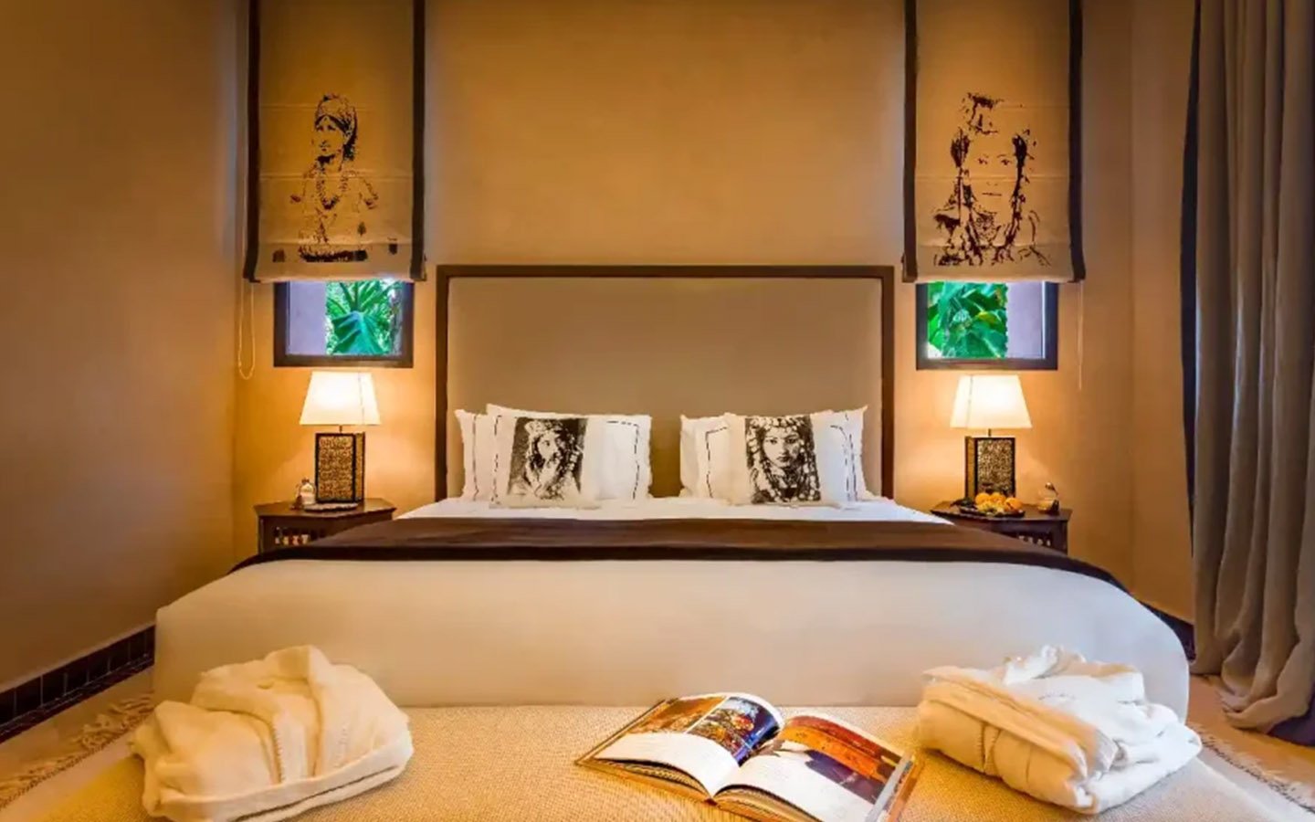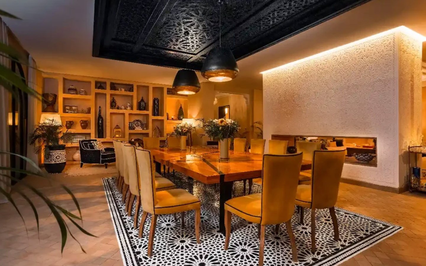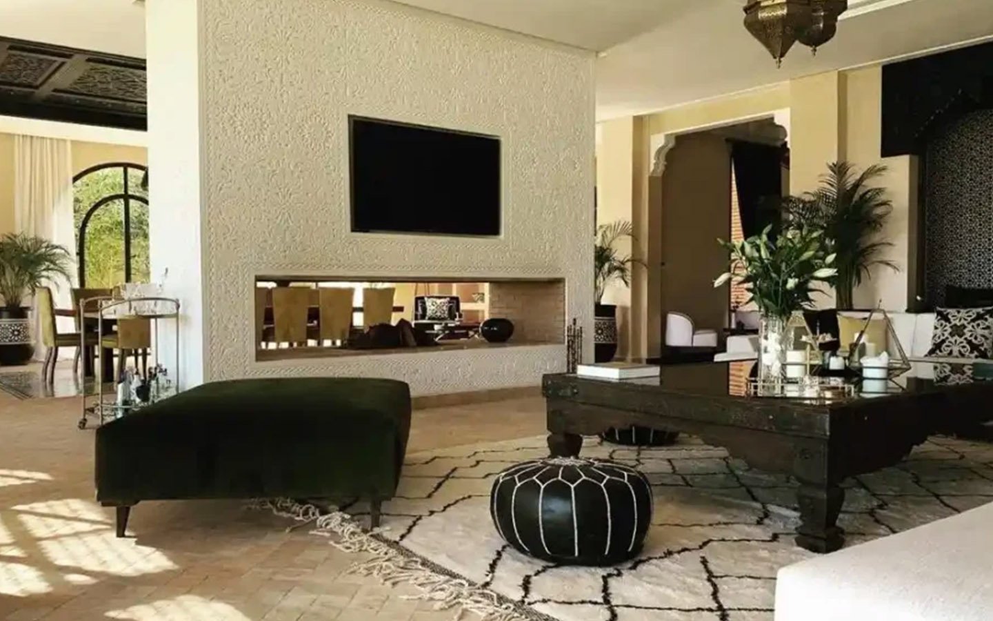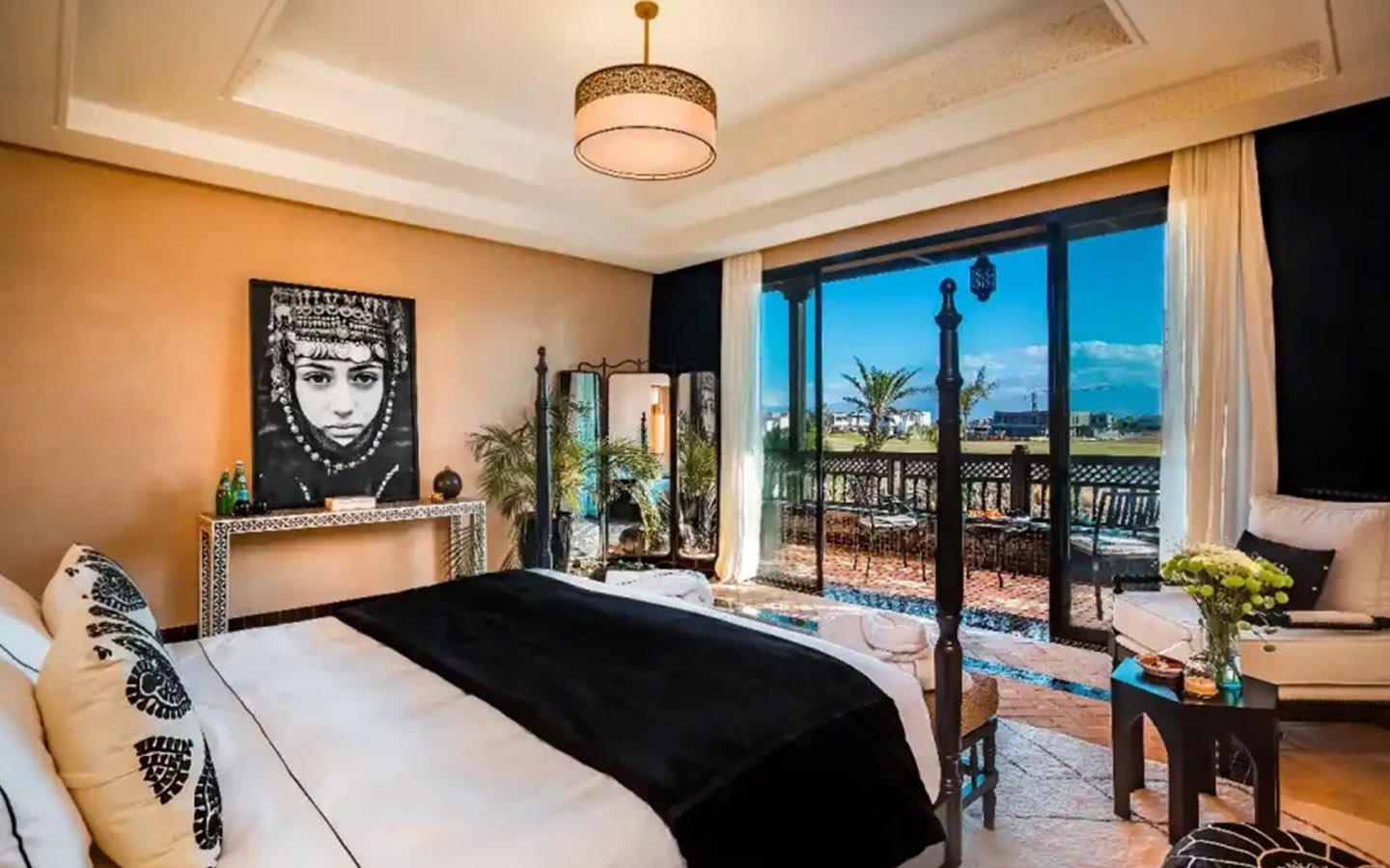 Maison K is an exceptional private villa located on the first line of the golf course in the heart of Marrakech, offering an authentic and luxurious Moroccan experience. This sublime residence features 8 sumptuous suites, a beautiful spa with Moroccan and Turkish hammams, a massage room, and an outdoor swimming pool with a pool house for unforgettable relaxation. Guests are welcomed with a transfer from the airport, a welcome meal, and tea, and are cared for by a dedicated staff including a chef, maid, butler, and a guard, ensuring a truly memorable and comfortable stay.