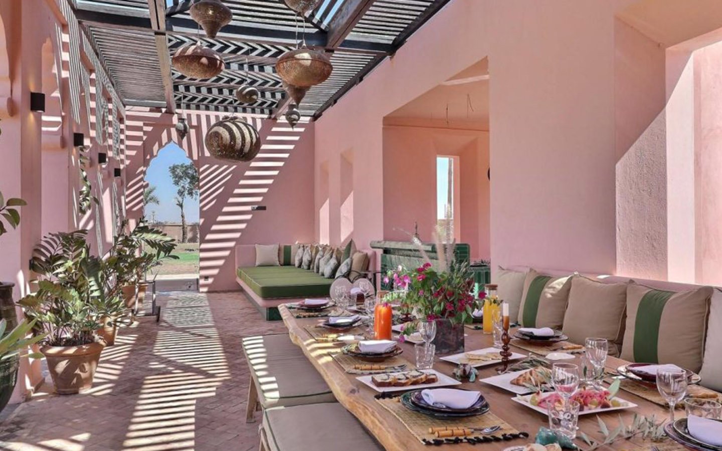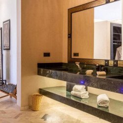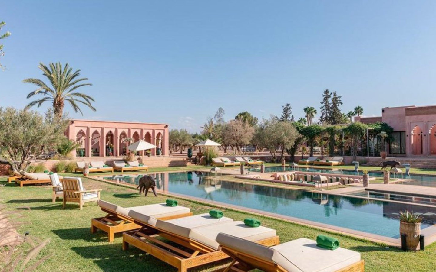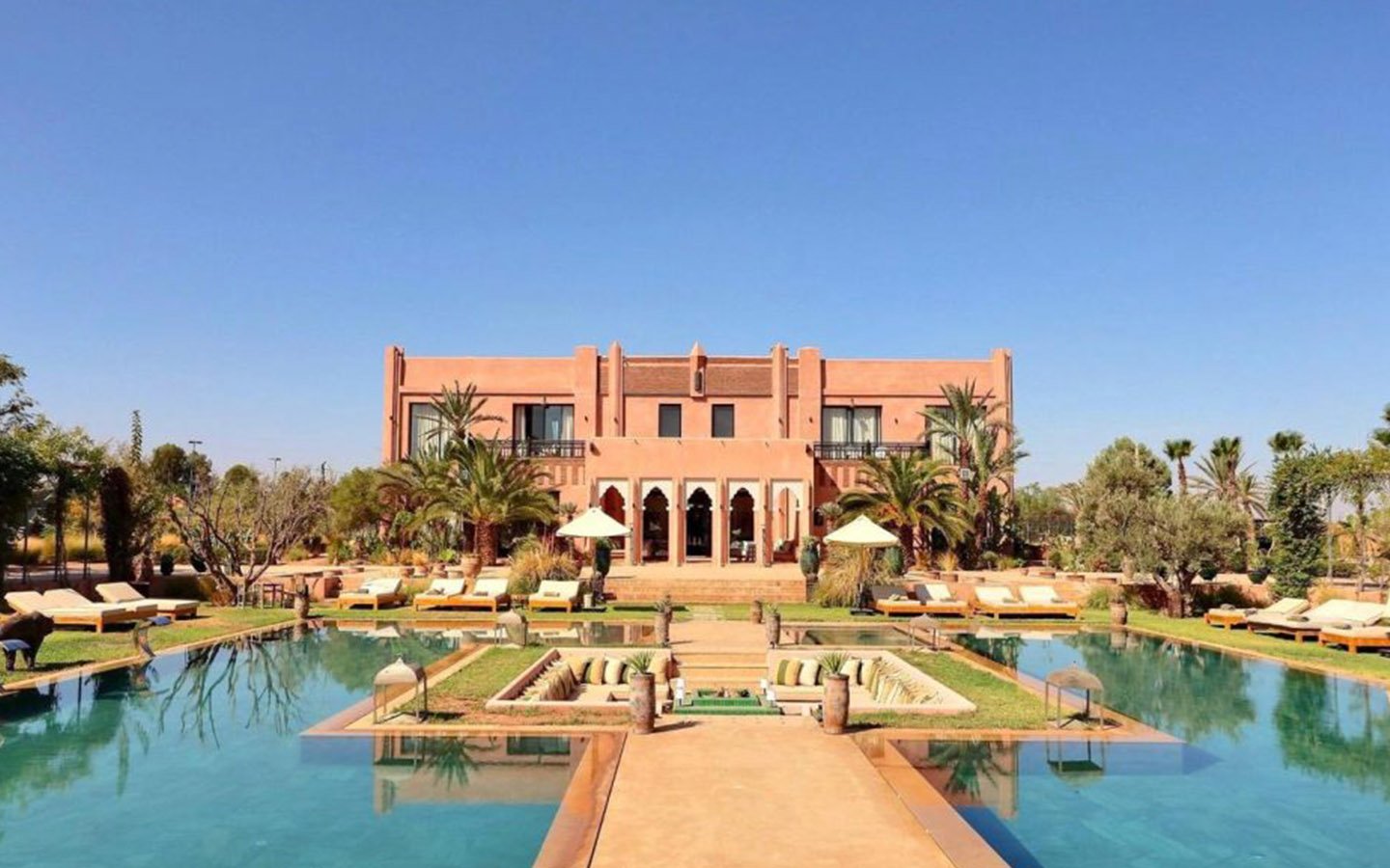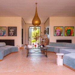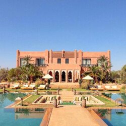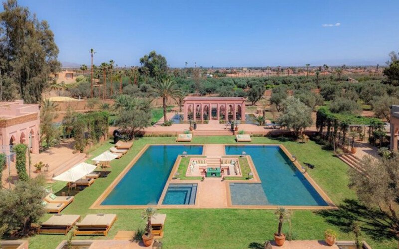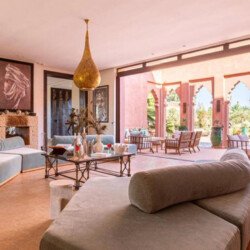 Just 15 minutes from the center of Marrakech, this magnificent estate offers an exclusive retreat combining luxury, comfort, and tranquility. Set within 30,000 m² of meticulously landscaped gardens, the property spans 2,000 m² of living space across multiple elegant pavilions and features 13 spacious, air-conditioned suites, each with a private bathroom and underfloor heating. Guests can enjoy four private pools (three heated on request), a tennis court, padel court, mini-golf, pétanque area, a kids’ club, a private spa with indoor pool, hammam, and massage rooms, a fully equipped gym, and a private cinema. A dedicated staff ensures a seamless stay, with a private chef, daily breakfast, housekeepers, gardeners, and security personnel maintaining the estate. Perfect for high-end vacations, wellness retreats, or private events, this property offers a rare combination of grandeur, privacy, and comfort in Marrakech.