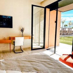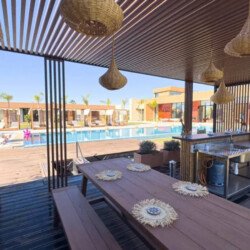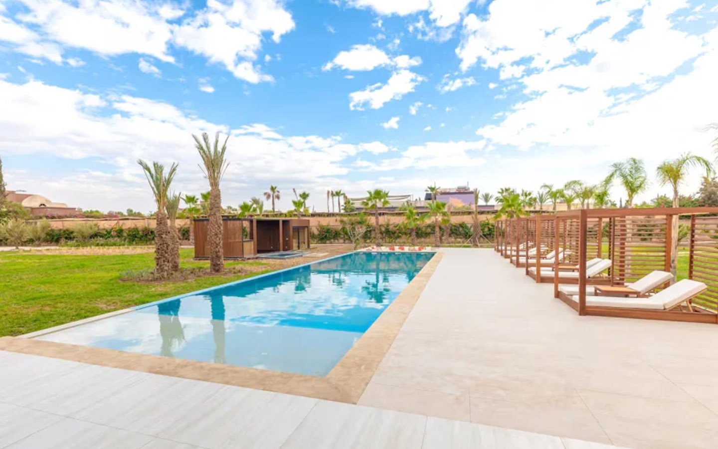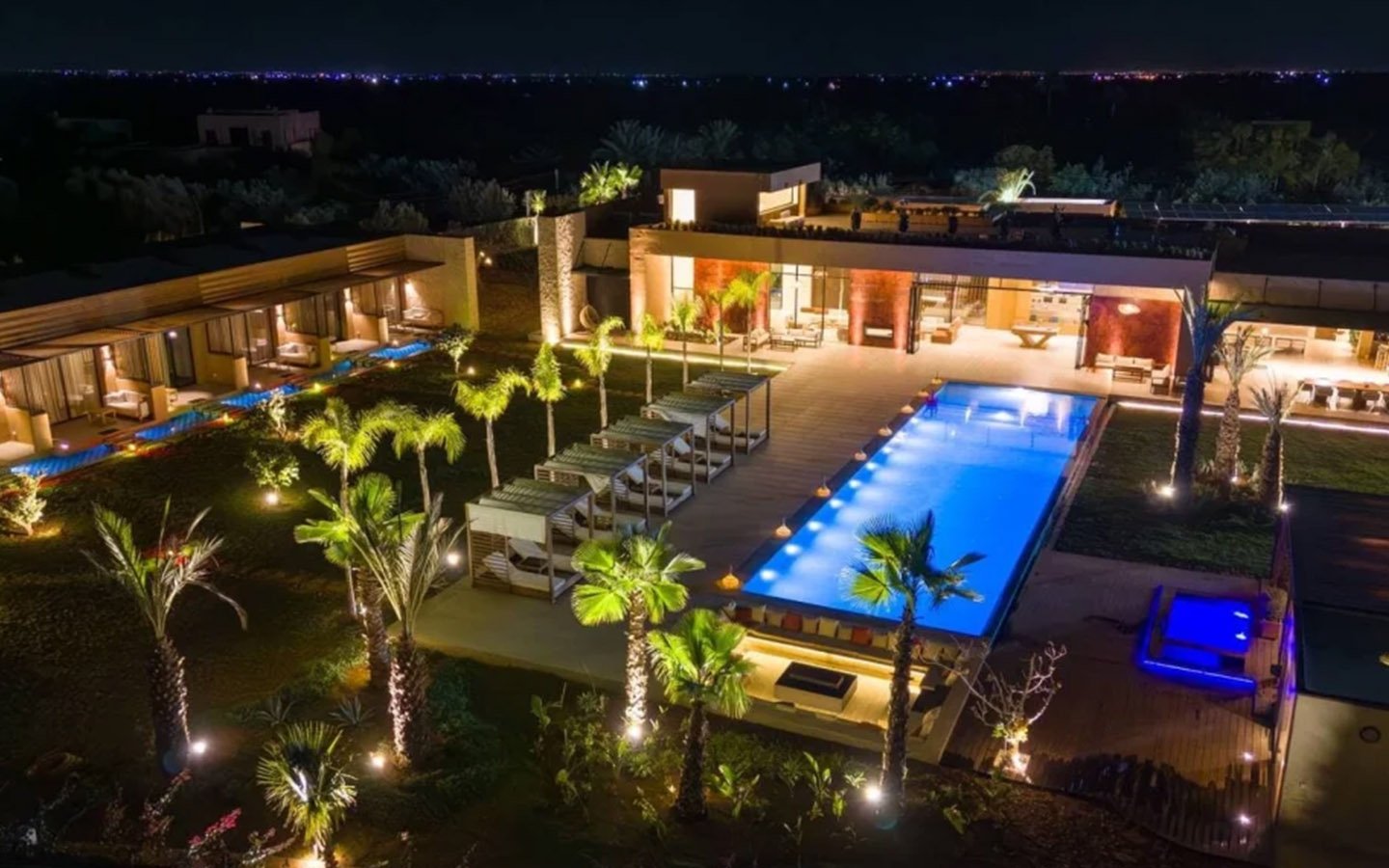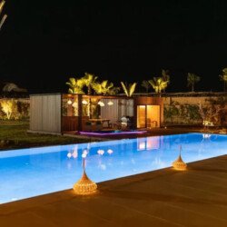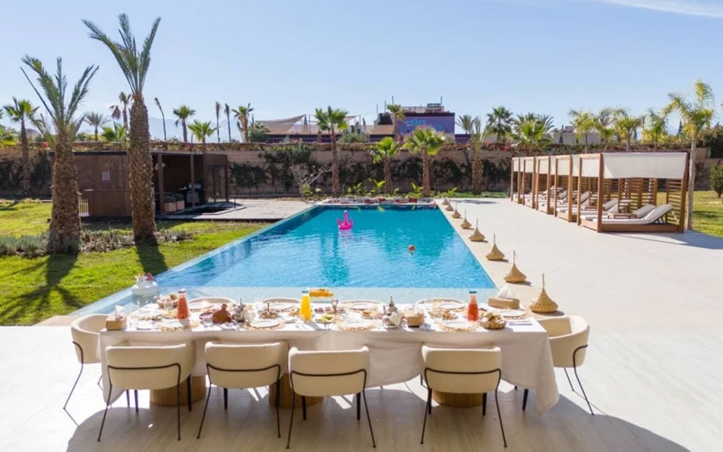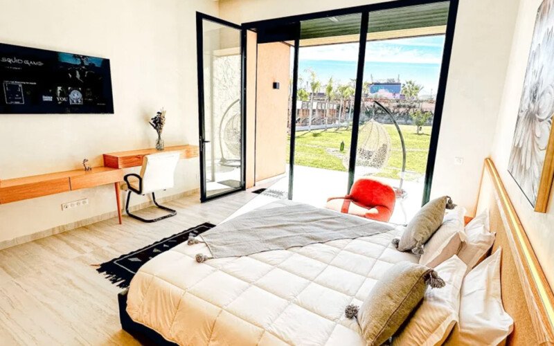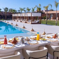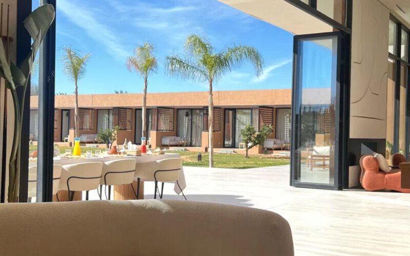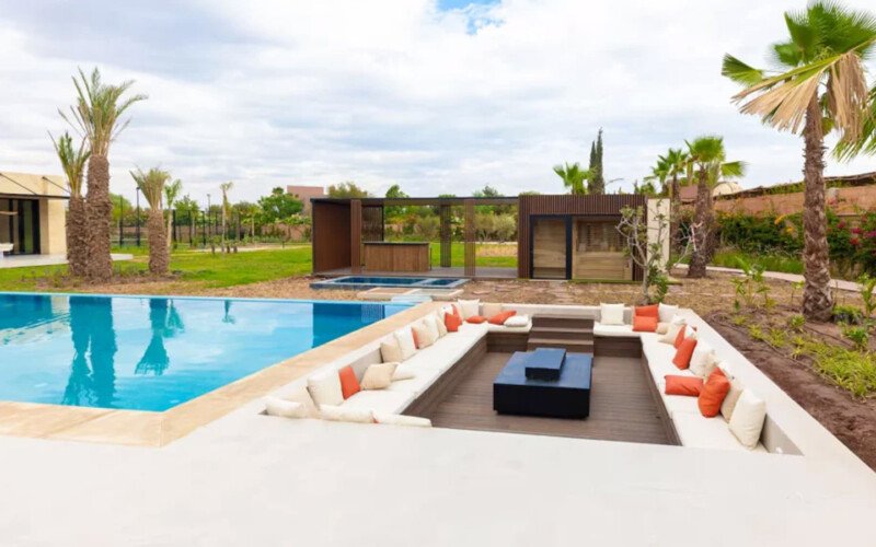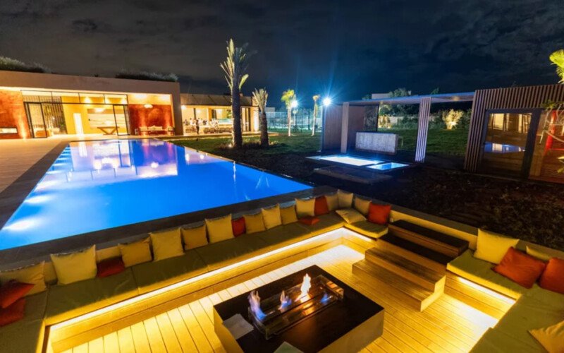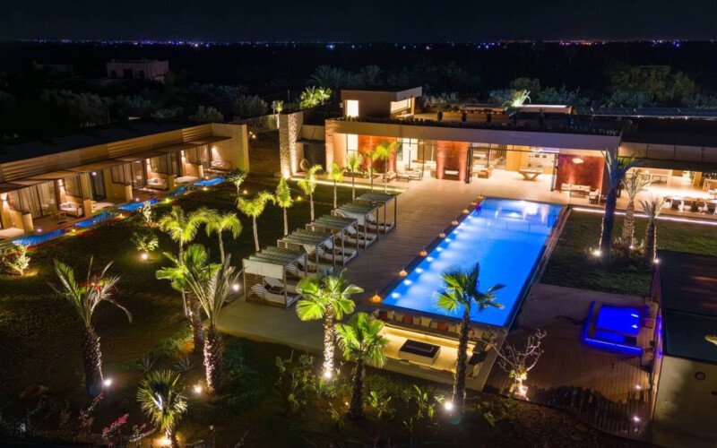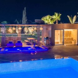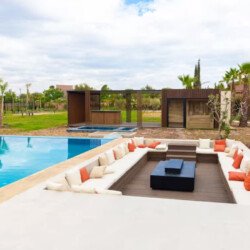 Nestled in a green setting at the gates of the Marrakech Palmeraie, Villa Almaz welcomes you into an exceptional setting that blends refinement, modern comfort, and a warm atmosphere. This sumptuous private property is a true invitation to escape, conceived to offer its guests an unforgettable experience with 10 bedrooms arranged around a superb private pool at the heart of the garden, ensuring perfect intimacy. Among the premium facilities are a private heated pool, a rare private padel court, a billiard table, and several indoor and outdoor lounges, all complemented by personalized hotel service including a cook and daily housekeeping.