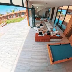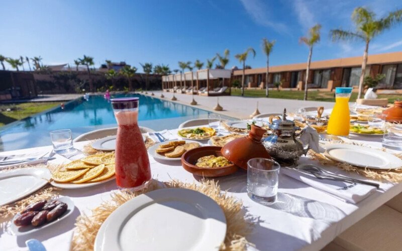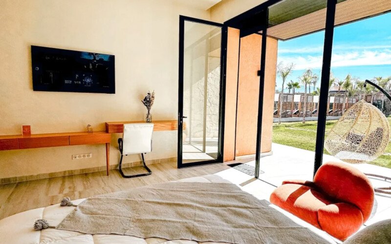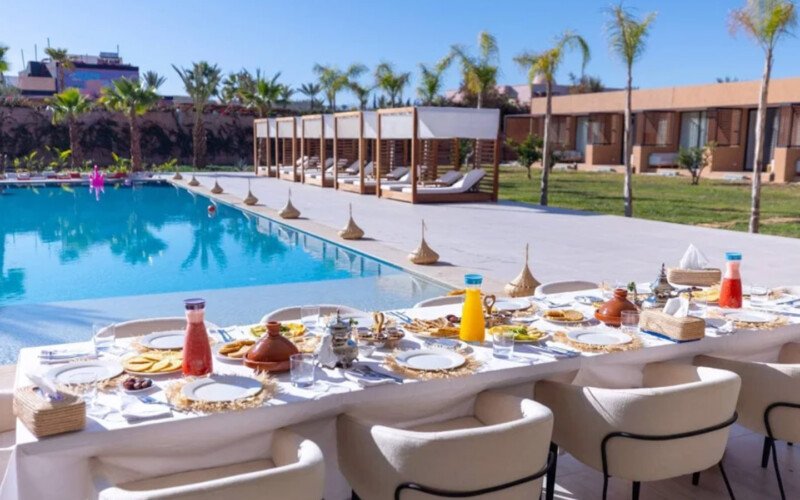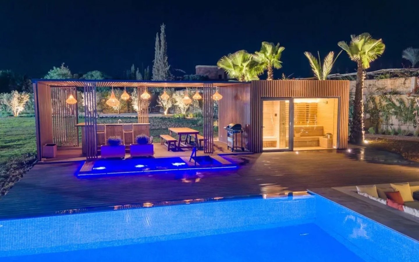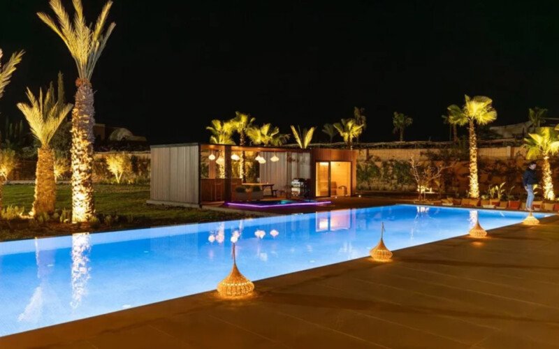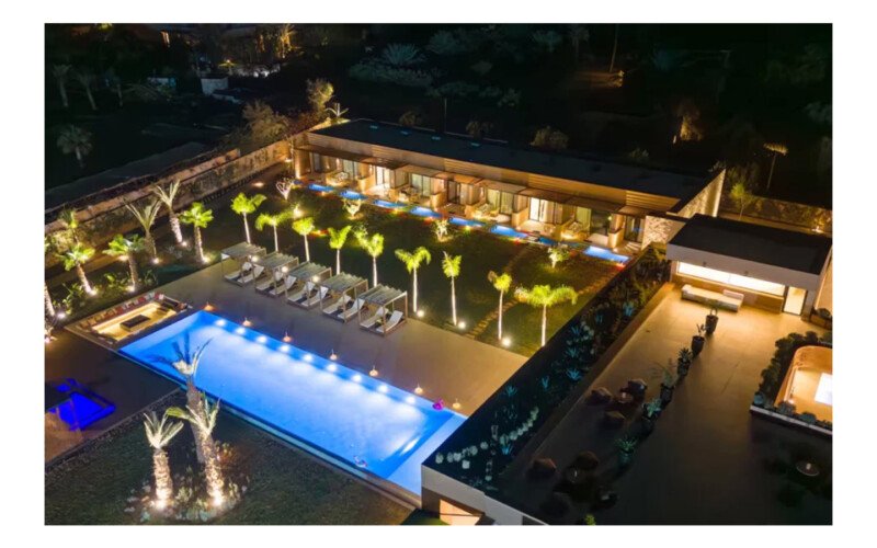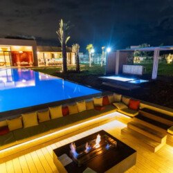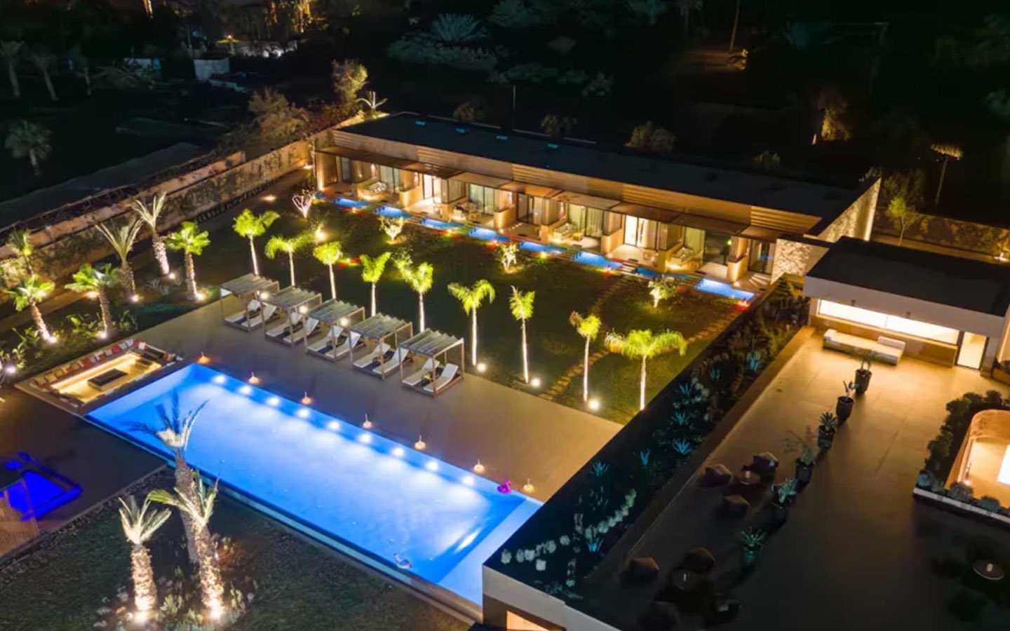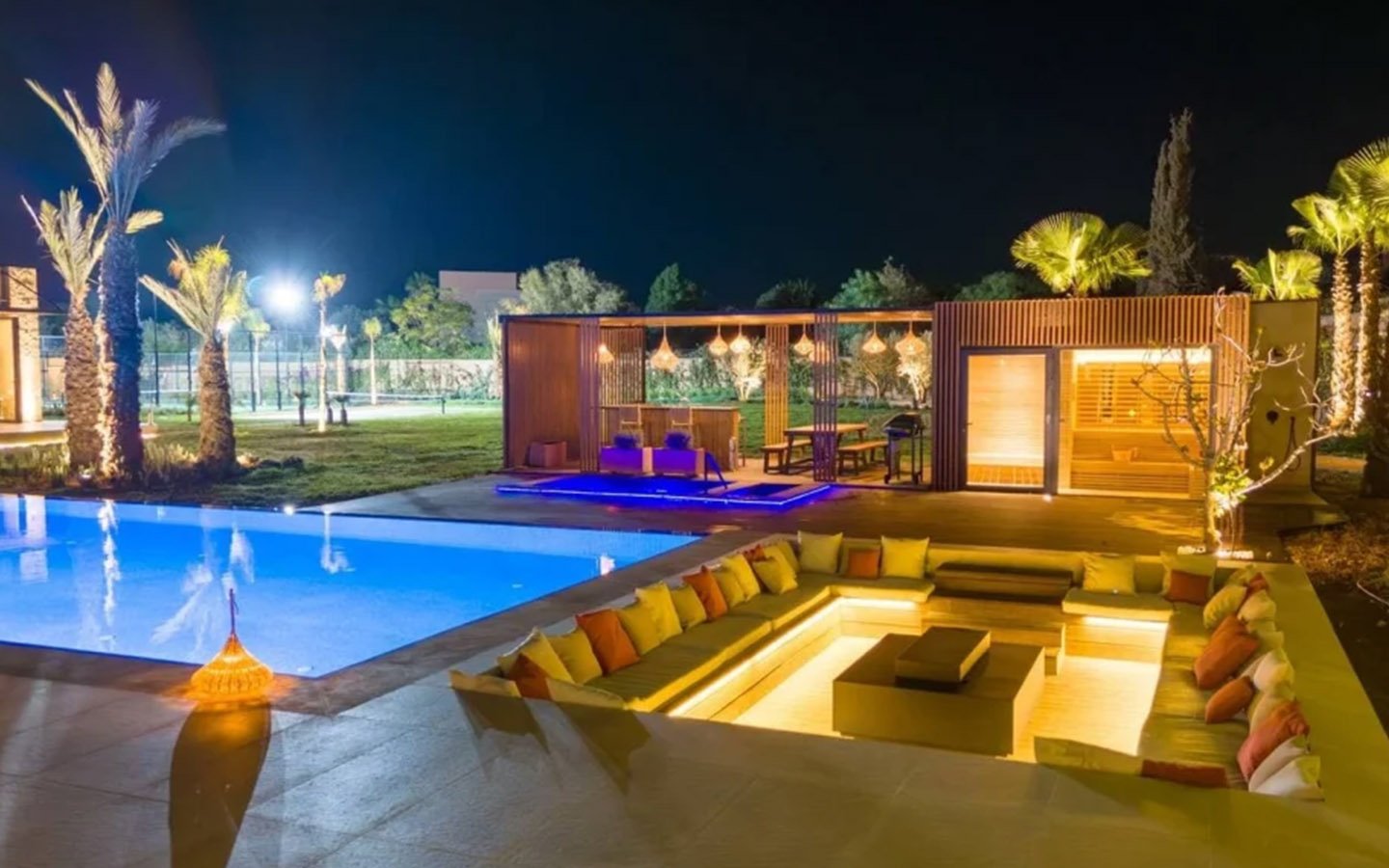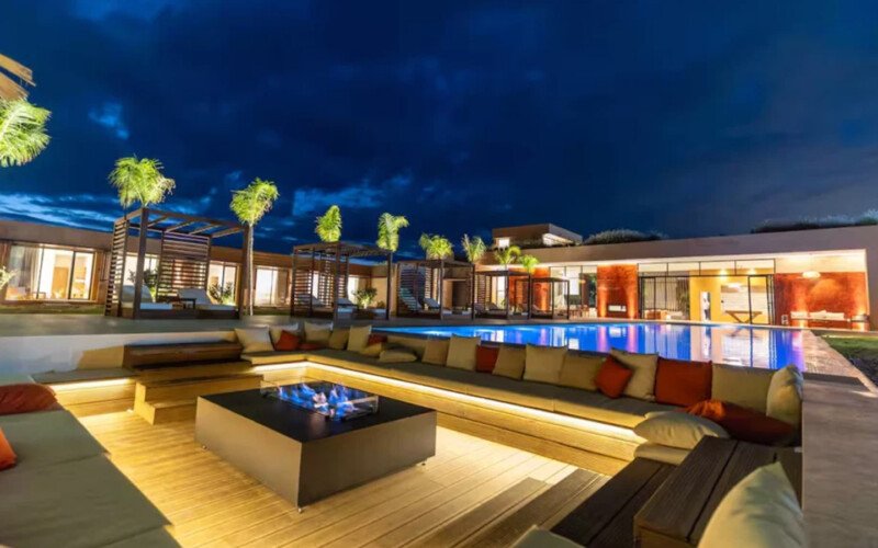 Nestled in a green setting at the gates of the Marrakech Palmeraie, Villa Almaz welcomes you into an exceptional setting that blends refinement, modern comfort, and a warm atmosphere. This sumptuous private property is a true invitation to escape, conceived to offer its guests an unforgettable experience with 10 bedrooms arranged around a superb private pool at the heart of the garden, ensuring perfect intimacy. Among the premium facilities are a private heated pool, a rare private padel court, a billiard table, and several indoor and outdoor lounges, all complemented by personalized hotel service including a cook and daily housekeeping.