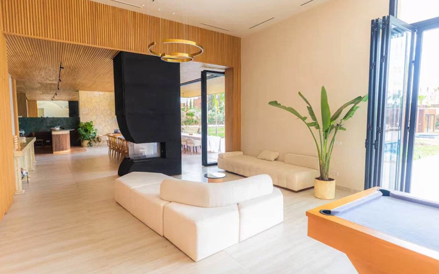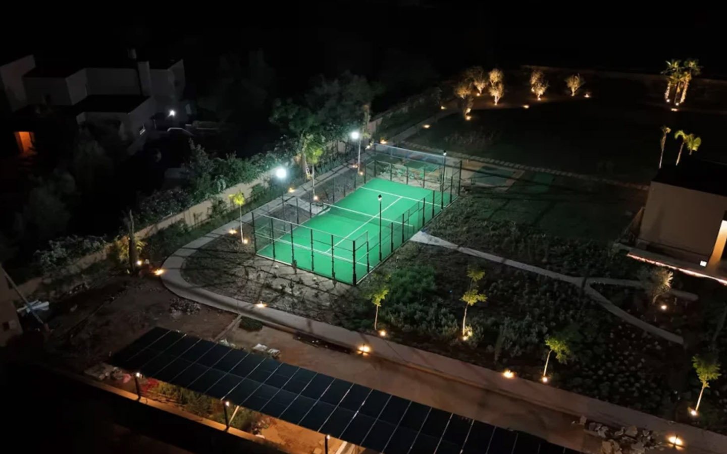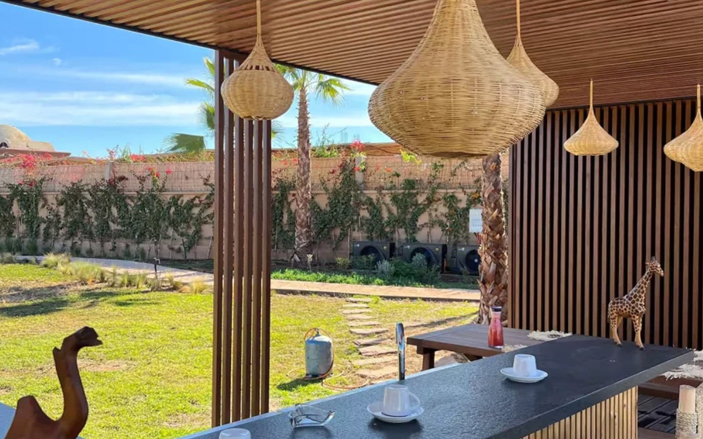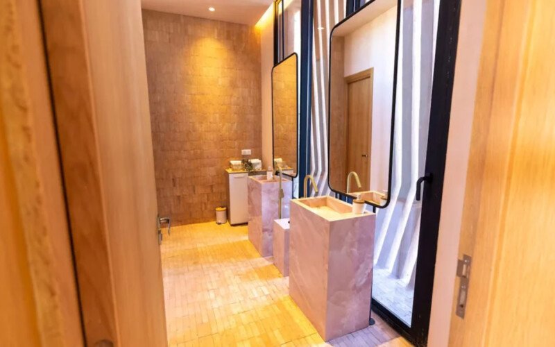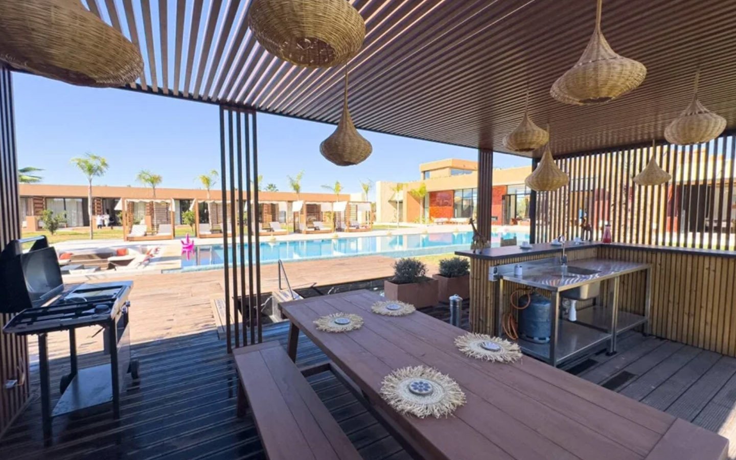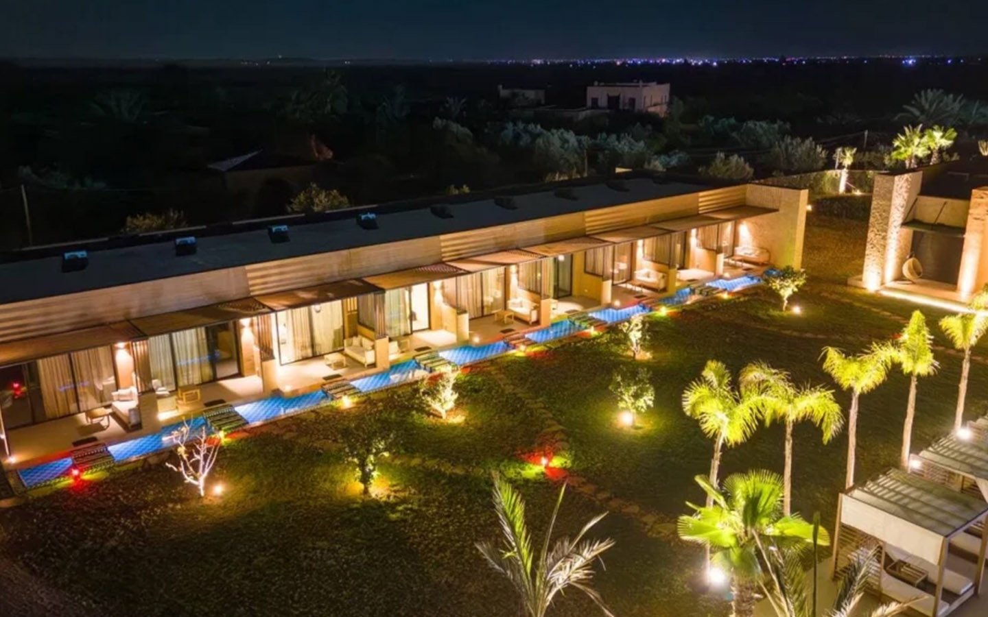 Nestled in a green setting at the gates of the Marrakech Palmeraie, Villa Almaz welcomes you into an exceptional setting that blends refinement, modern comfort, and a warm atmosphere. This sumptuous private property is a true invitation to escape, conceived to offer its guests an unforgettable experience with 10 bedrooms arranged around a superb private pool at the heart of the garden, ensuring perfect intimacy. Among the premium facilities are a private heated pool, a rare private padel court, a billiard table, and several indoor and outdoor lounges, all complemented by personalized hotel service including a cook and daily housekeeping.