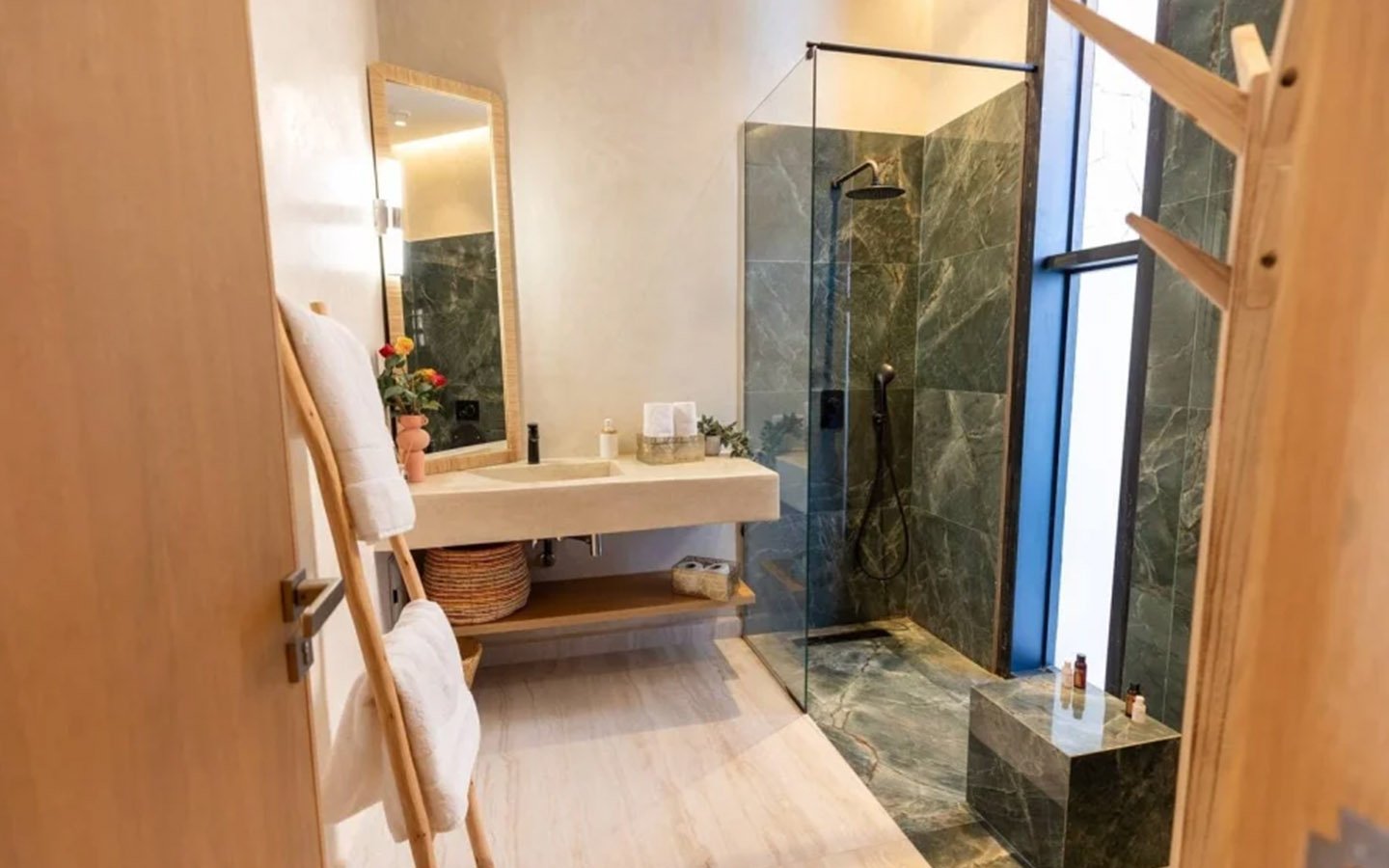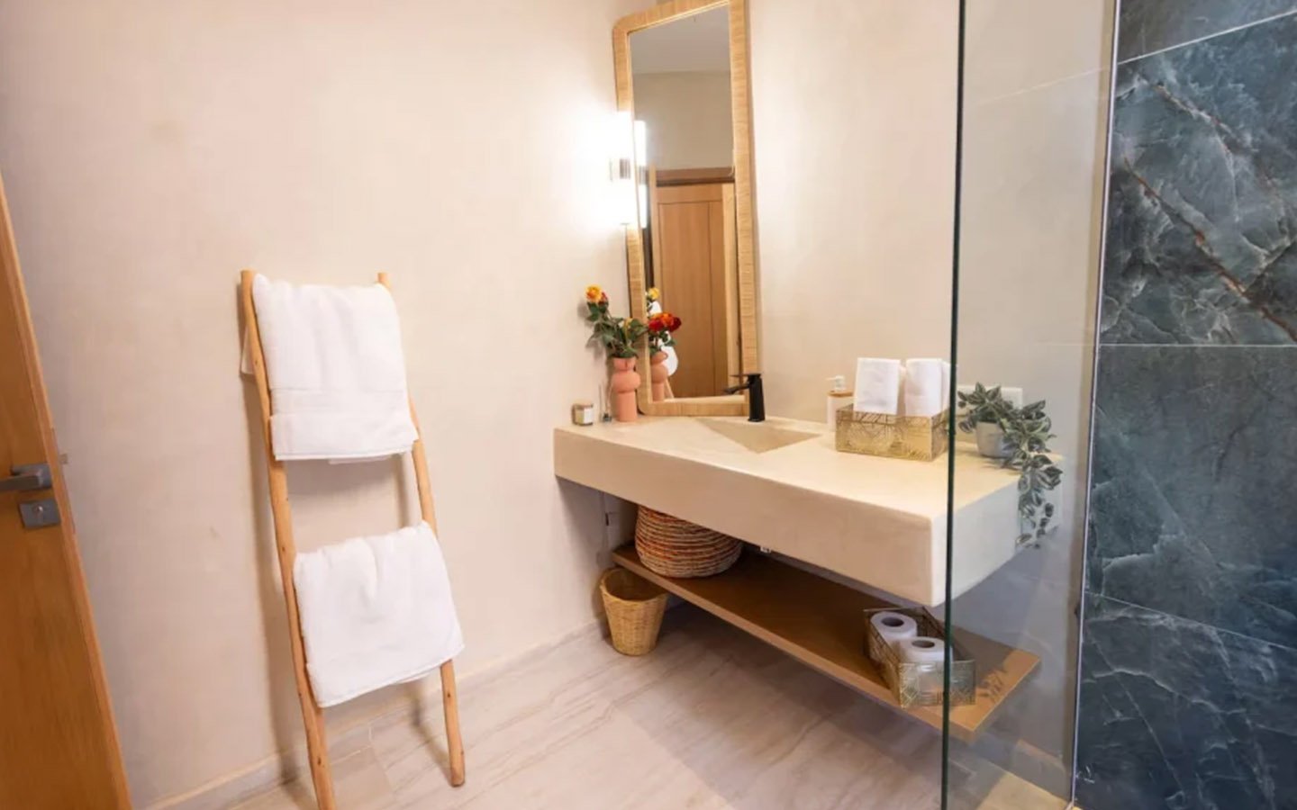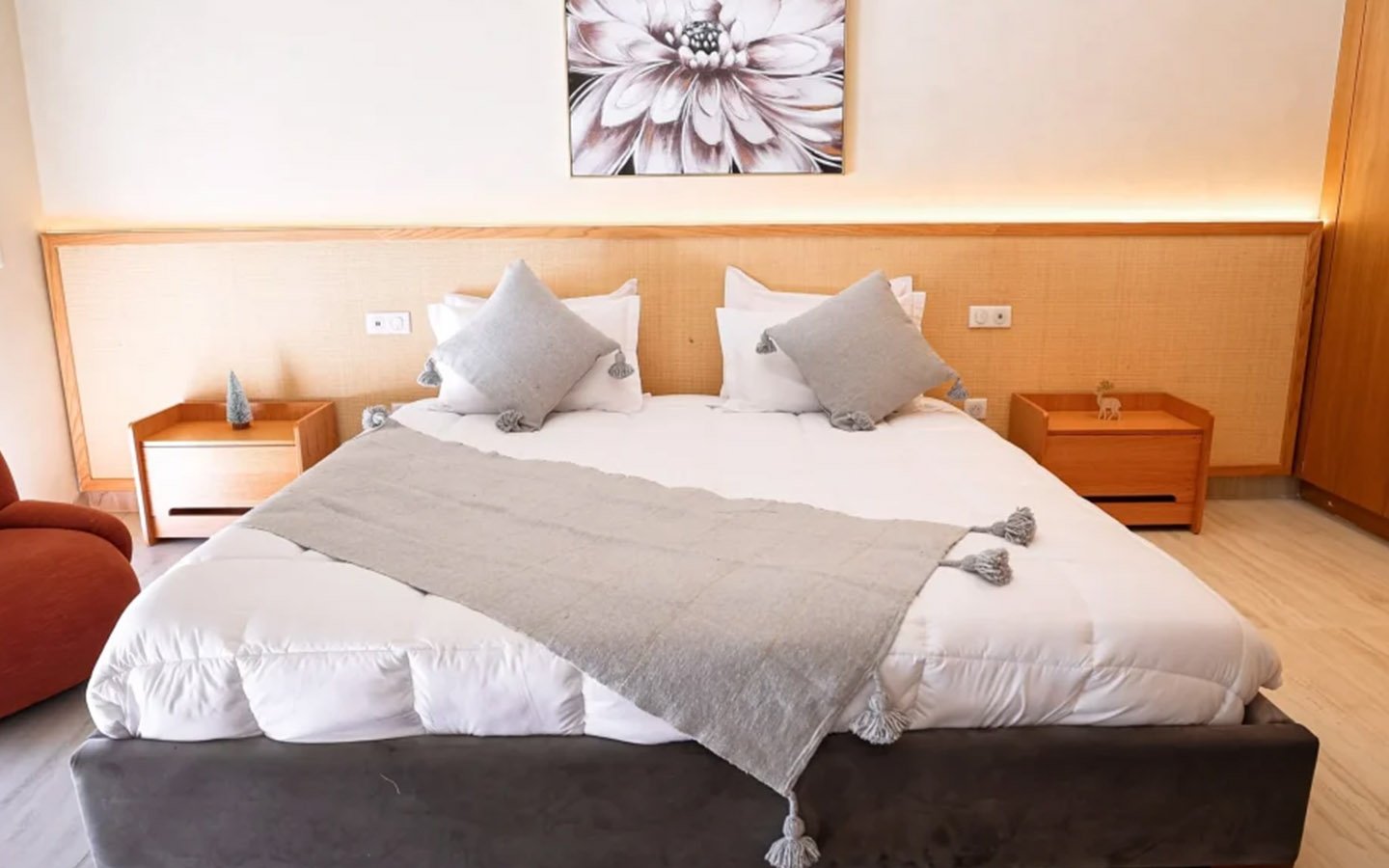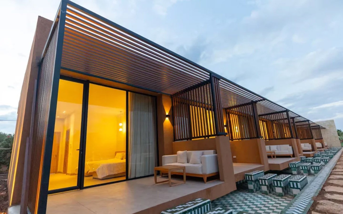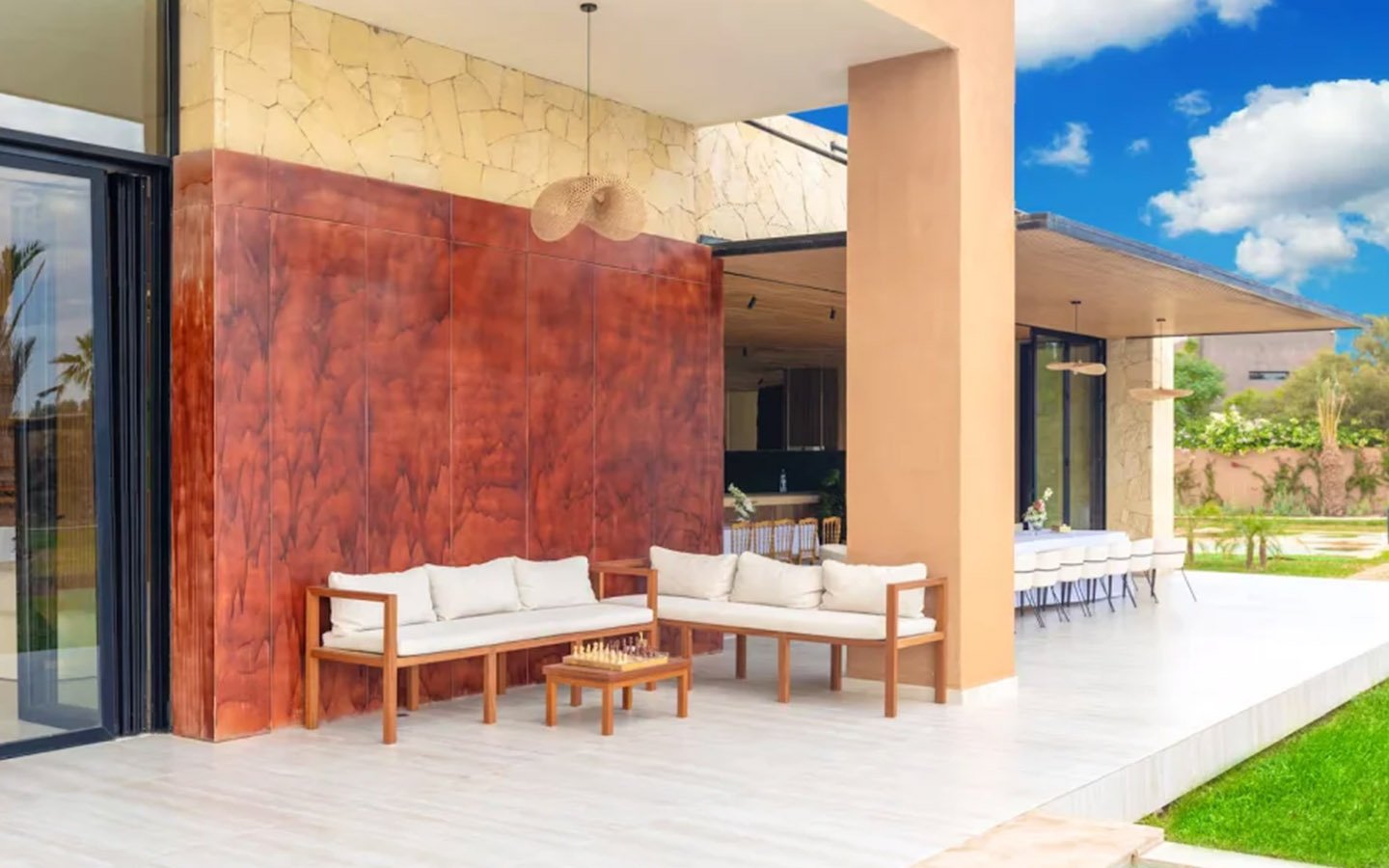 Nestled in a green setting at the gates of the Marrakech Palmeraie, Villa Almaz welcomes you into an exceptional setting that blends refinement, modern comfort, and a warm atmosphere. This sumptuous private property is a true invitation to escape, conceived to offer its guests an unforgettable experience with 10 bedrooms arranged around a superb private pool at the heart of the garden, ensuring perfect intimacy. Among the premium facilities are a private heated pool, a rare private padel court, a billiard table, and several indoor and outdoor lounges, all complemented by personalized hotel service including a cook and daily housekeeping.