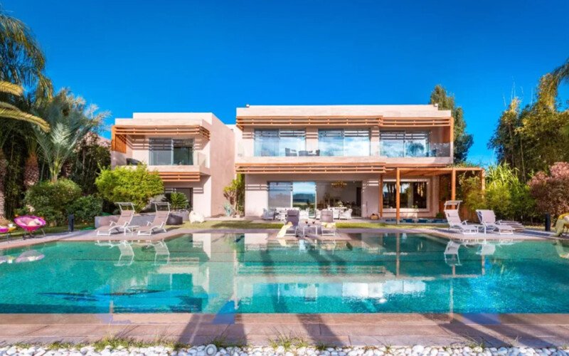Nestled within a vast 5,000 m² private park, Villa Anna is a luxurious 1,200 m² property in Marrakech designed for ultimate relaxation and entertainment. It features a state-of-the-art private cinema with massage chairs, a fully-equipped discotheque, and a comprehensive spa with a modern hammam, domotic sauna, jacuzzi, and a fitness room. The villa also boasts a heated outdoor pool, two heated jacuzzis (one with body massage), a private elevator, and an English-style bar, offering an exclusive and high-end experience for families or groups of friends.