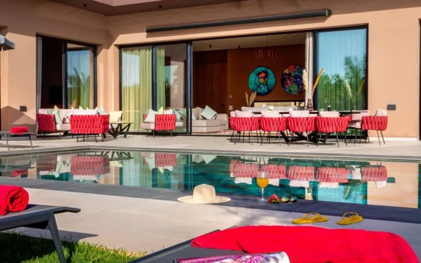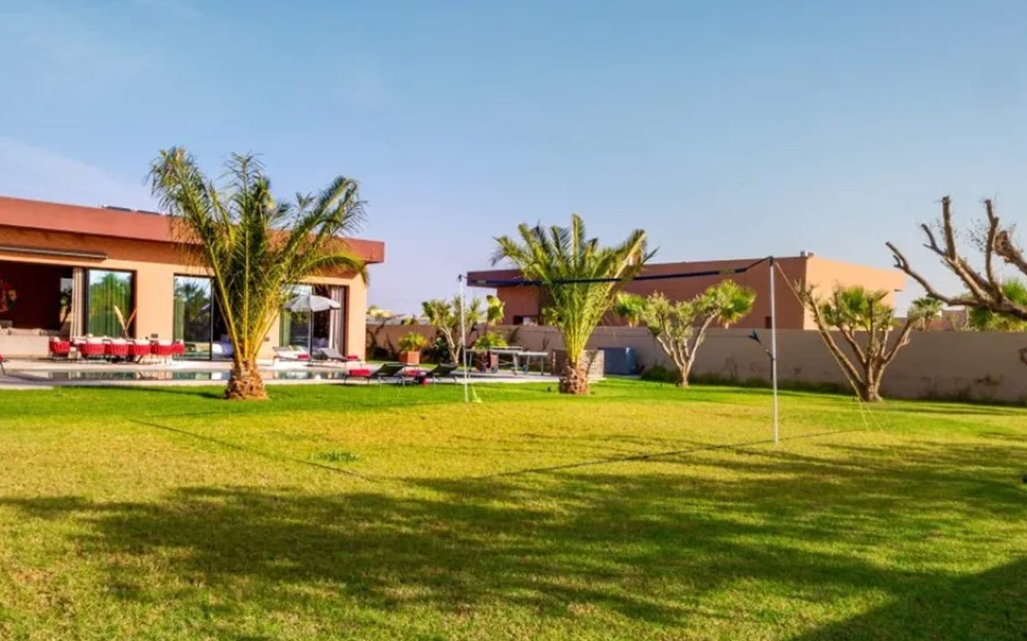 Discover a true haven of peace, perfect for a stay with family or friends. This villa offers a flexible capacity, allowing you to choose between an intimate configuration with 5 bedrooms or the complete villa with 10 bedrooms to accommodate a larger group. For your well-being and leisure, it features a traditional hammam, a massage room, a ping-pong table, and two swimming pools at your disposal for moments of freshness and relaxation. The villa is supported by a dedicated staff, including a cook and housekeeper, ensuring a comfortable and carefree stay.