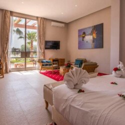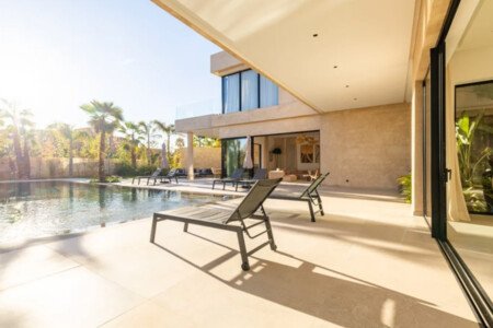 Villa Boudha is the ideal place for a family reunion or a getaway with friends, thoughtfully designed so that everyone can find their privacy while enjoying pleasant moments together both inside and out. The villa benefits from a unique calm and an atmosphere that inspires well-being and serenity thanks to its large relaxation areas and sumptuous pool, while the bedrooms are decorated in an elegant, minimalist style where white and natural tones dominate. A recently built hammam and a massage table are part of the wellness offerings, and a chef is available to prepare your meals, with breakfast included, ensuring a comfortable and successful stay.