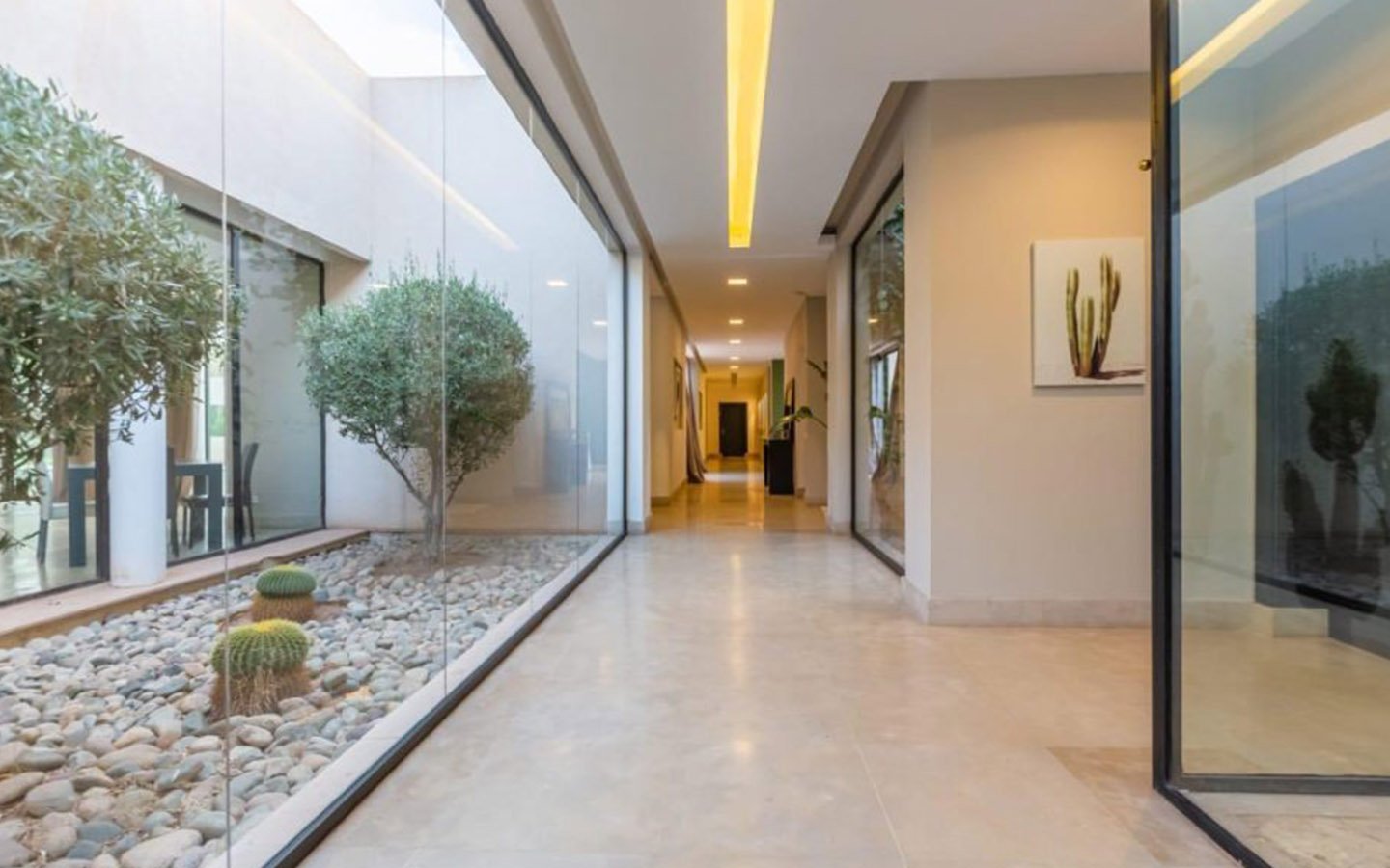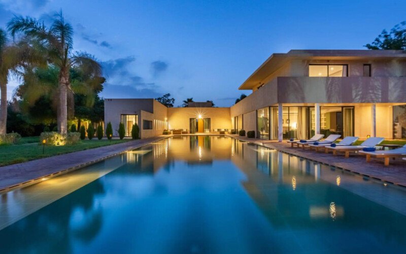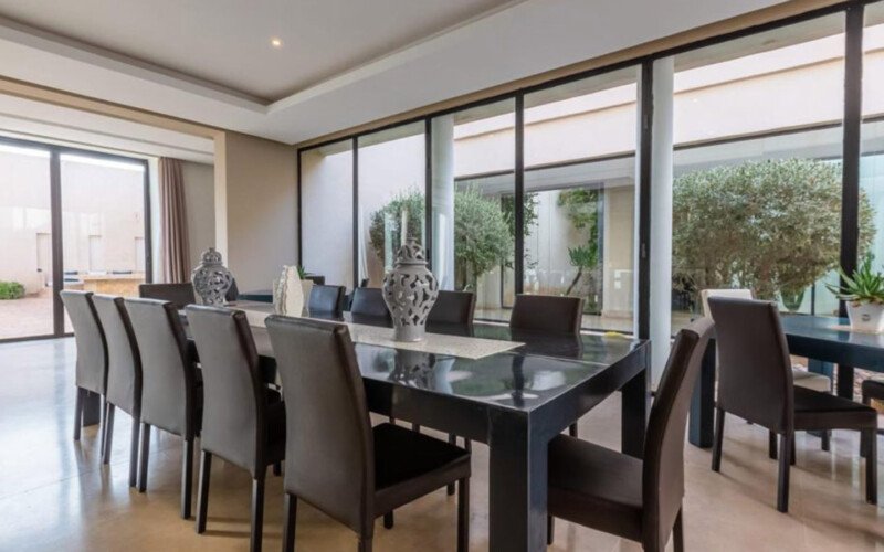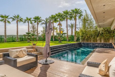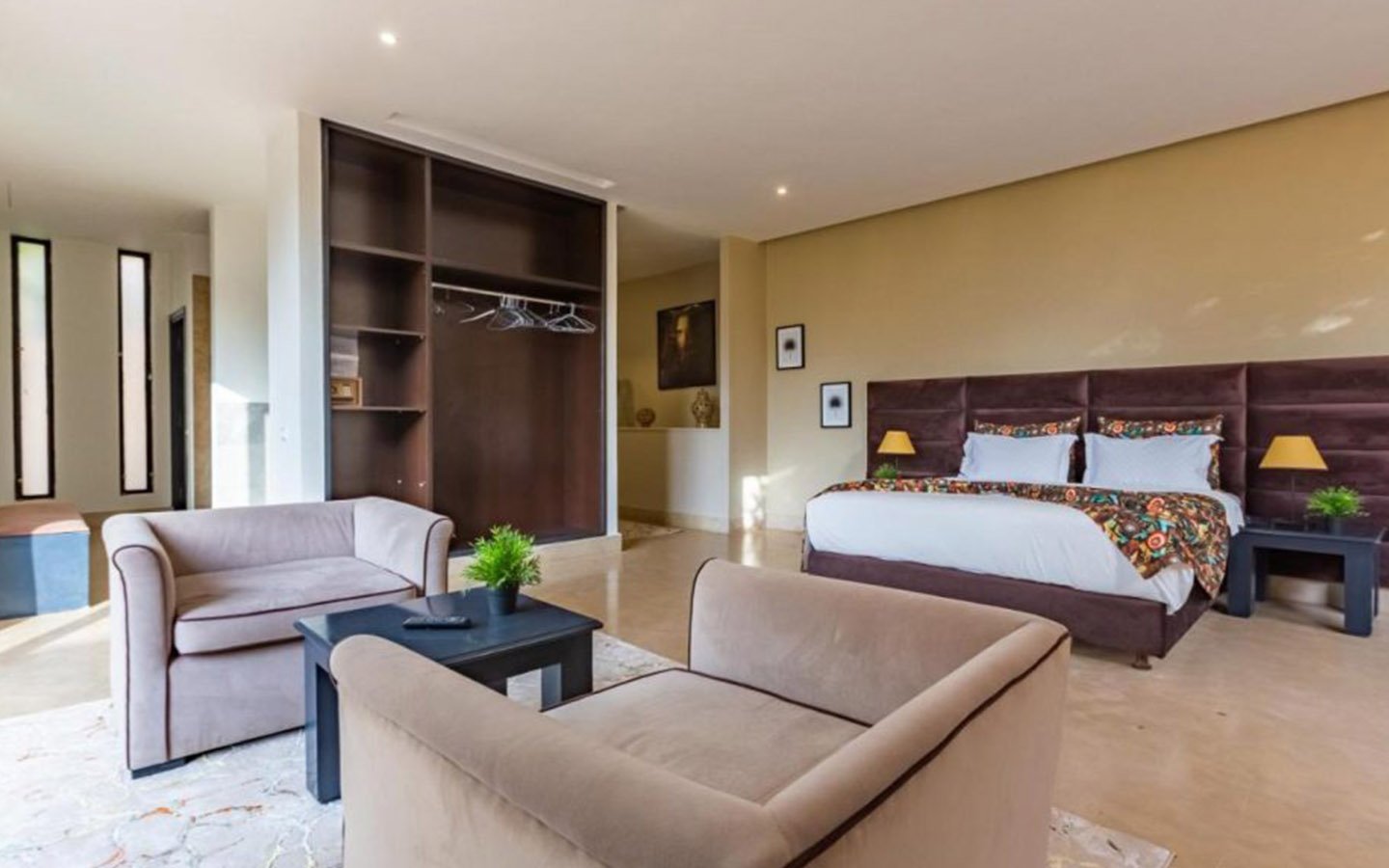 Nestled in a green setting in the heart of Marrakech, Villa Oasis embodies elegance, serenity, and absolute refinement, designed to offer its guests an unparalleled stay experience between modern comfort, Moroccan authenticity, and high-end services. The villa includes ten spacious bedrooms, all with elegant private bathrooms, and is surrounded by a private garden dotted with palm trees and exotic plants, featuring a private pool as the centerpiece of the outdoor space. With a full range of modern equipment and a quality service provided by a discreet and professional team, it offers much more than accommodation—a true experience in a unique universe where every detail is designed for your well-being.