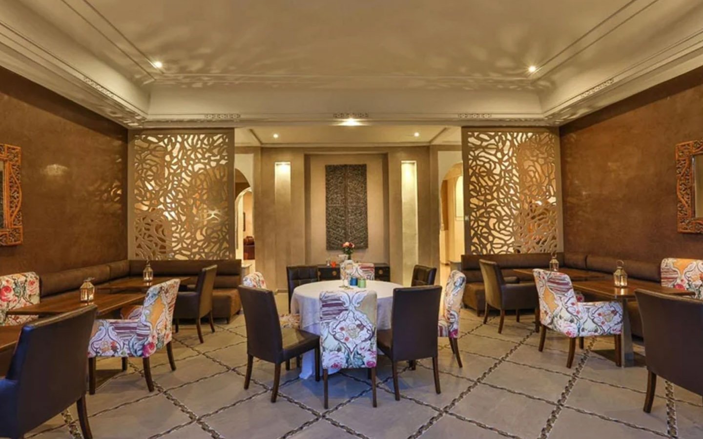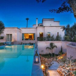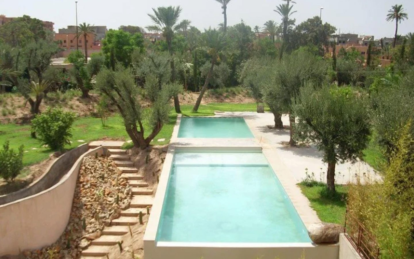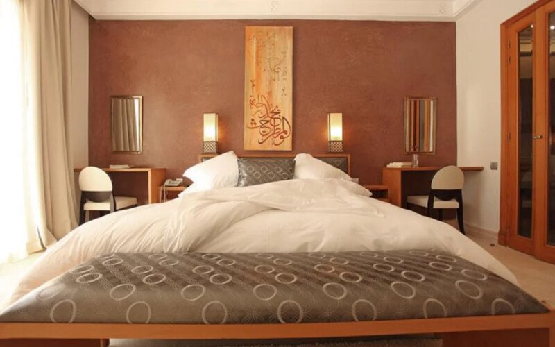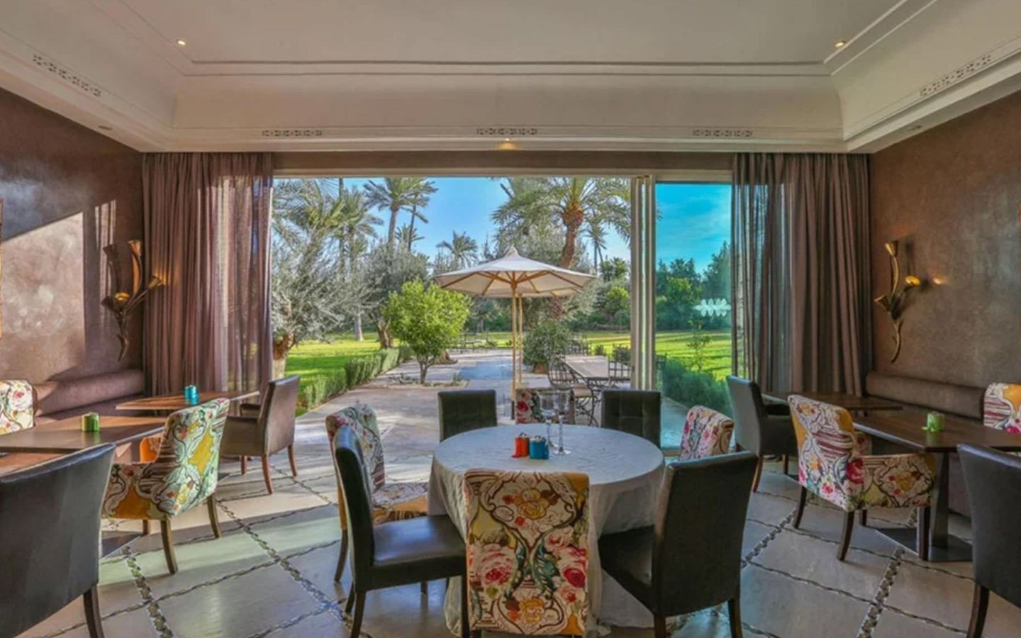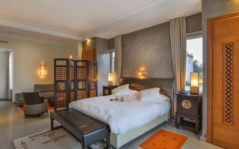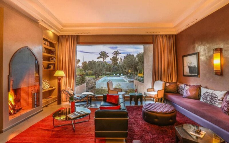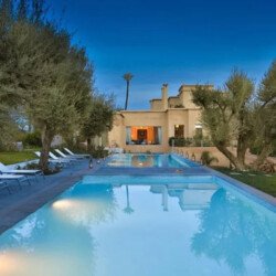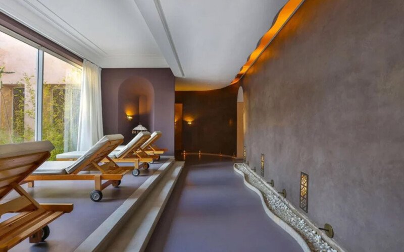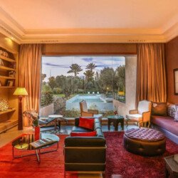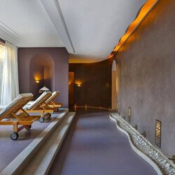 Upon entering Palais Rym, you are captivated by its vast, lush garden filled with majestic palm trees, fragrant bitter orange trees, and centuries-old olive trees, at the heart of which lies a refreshing pool with an ideal year-round temperature. This palace features intimate lounges with imposing fireplaces and 11 unique suites, each with a private terrace, creating an elegant setting for a romantic escape, family gathering, or special event. It is a true haven of wellness, complete with two hammams, a jacuzzi, a spa suite with a double jacuzzi, two massage rooms with individual bathtubs, and a fitness room.