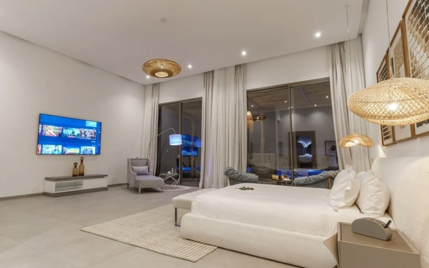 Villa Pur Sang is a splendid 5-bedroom villa located in Marrakech, featuring a pool, a hammam, an immense garden with a horse stable, a terrace, and household staff. This property, with its own hotel services, is equipped with all the necessary comfort for an unforgettable vacation with family or friends, including a well-being area with a hammam, a fitness room, and a massage room. Situated just a few minutes from the vibrant city center, it offers a perfect blend of luxurious amenities and a peaceful, exclusive setting.