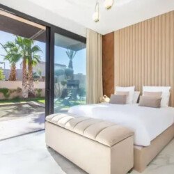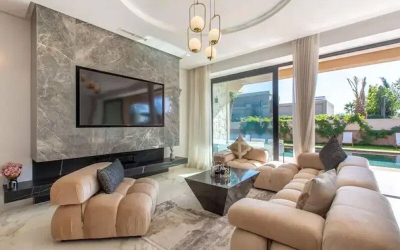 À quelques minutes du centre historique de Marrakech, Villa Rafinite incarne l’élégance moderne et le confort absolu dans un cadre paisible et verdoyant. Idéale pour les familles, les groupes d’amis ou les événements privés, cette somptueuse propriété allie raffinement contemporain et atmosphère chaleureuse. Elle se compose de 5 chambres spacieuses, toutes décorées avec goût, ainsi que de 6 salles de bains modernes parfaitement équipées pour un confort optimal. Son vaste salon lumineux, agrémenté d’un coin repas et d’un espace détente convivial, s’ouvre sur une terrasse aménagée et un jardin luxuriant entourant une piscine privée, véritable havre de sérénité sous le soleil marocain. La cuisine entièrement équipée et les prestations complètes – linge de maison, serviettes, Wi-Fi gratuit et parking privé – assurent un séjour sans contrainte. Nichée à seulement 13 km du Palais de la Bahia et de la Place Jemaa el-Fna, ainsi qu’à 13 km de l’aéroport Marrakech-Ménara, Villa Rafinite offre un équilibre parfait entre proximité et tranquillité. Alliant design contemporain, intimité et confort haut de gamme, cette villa se distingue comme une adresse de choix pour un séjour inoubliable au cœur de la ville ocre.