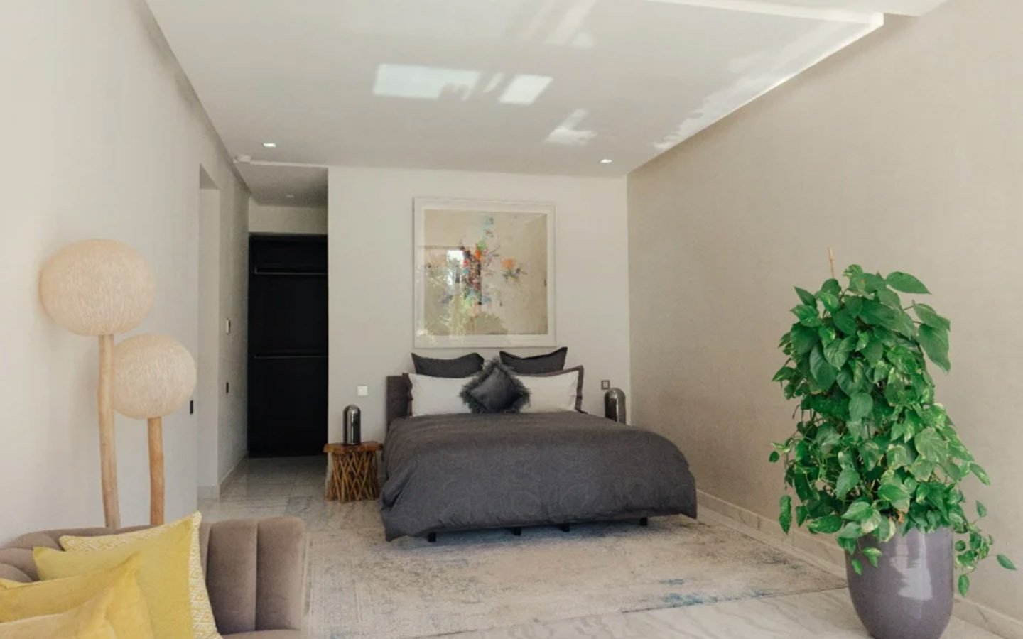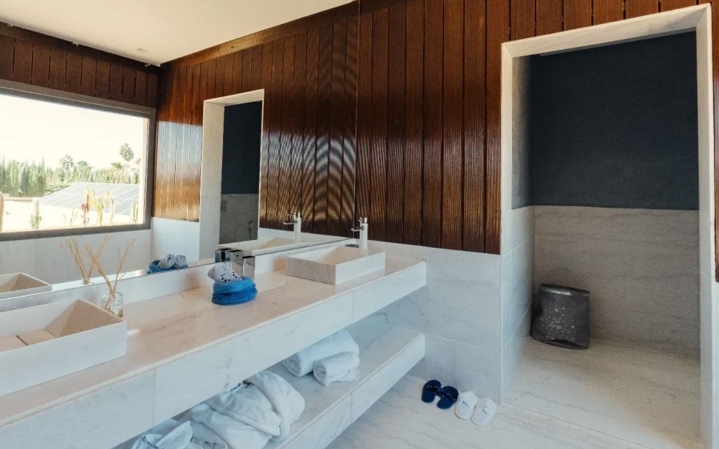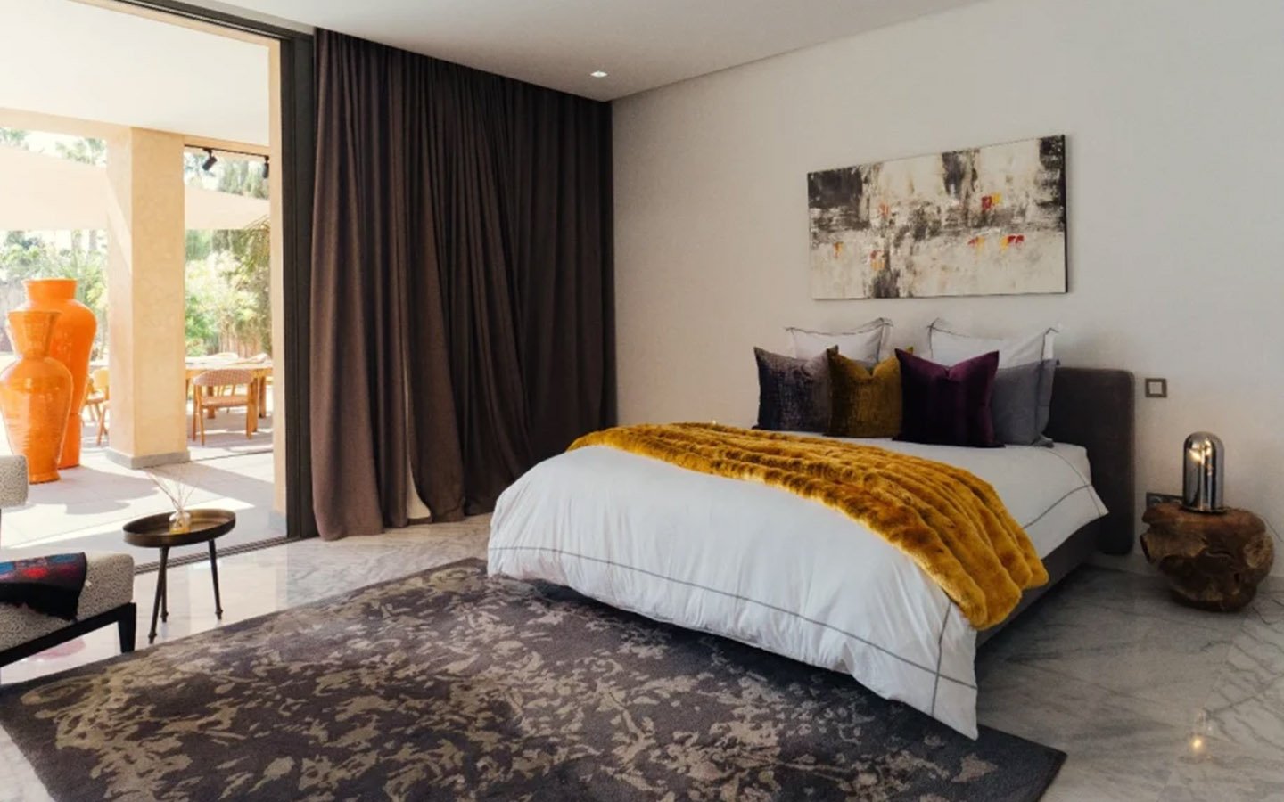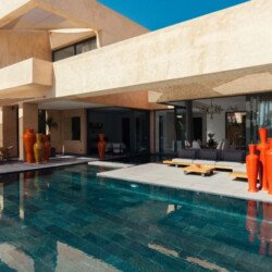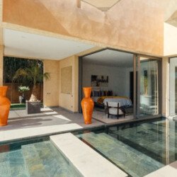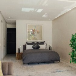 Perched facing the snow-capped peaks of the Atlas Mountains, with a lush 3800-square-meter garden and a renowned swimming pool, Villa Saphir stands out for its luxurious setting that subtly blends modernity and traditional “beldi” elegance. Its sand-colored, refined architecture offers a contemporary and refined living environment, conducive to a memorable stay filled with well-being and tranquility. The villa is equipped with high-speed fiber optic WiFi, central air conditioning, and 24/7 security, and features a large pool with a children’s area, a jacuzzi, a fitness room, and a spa area with a hammam for ultimate relaxation.