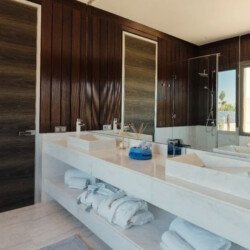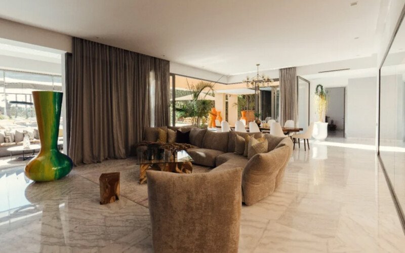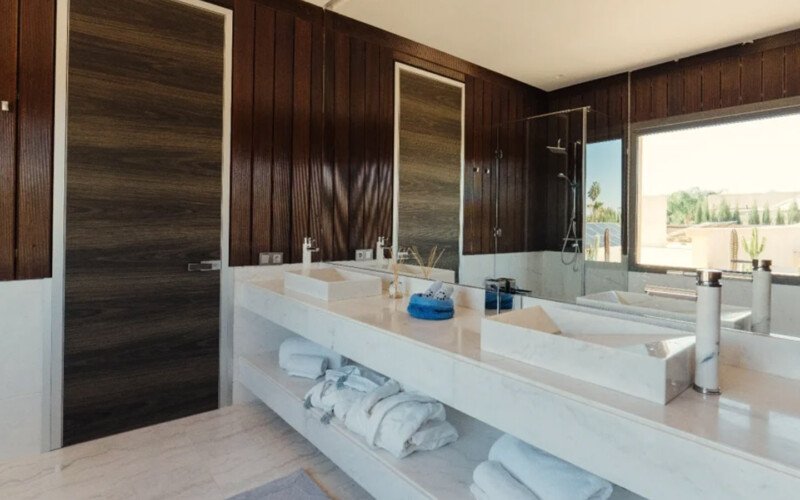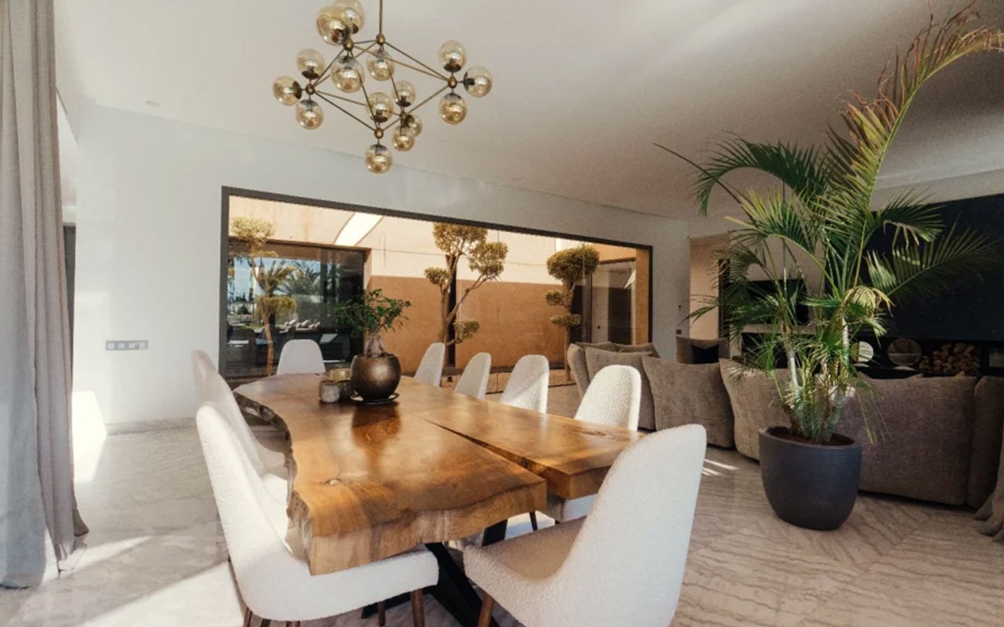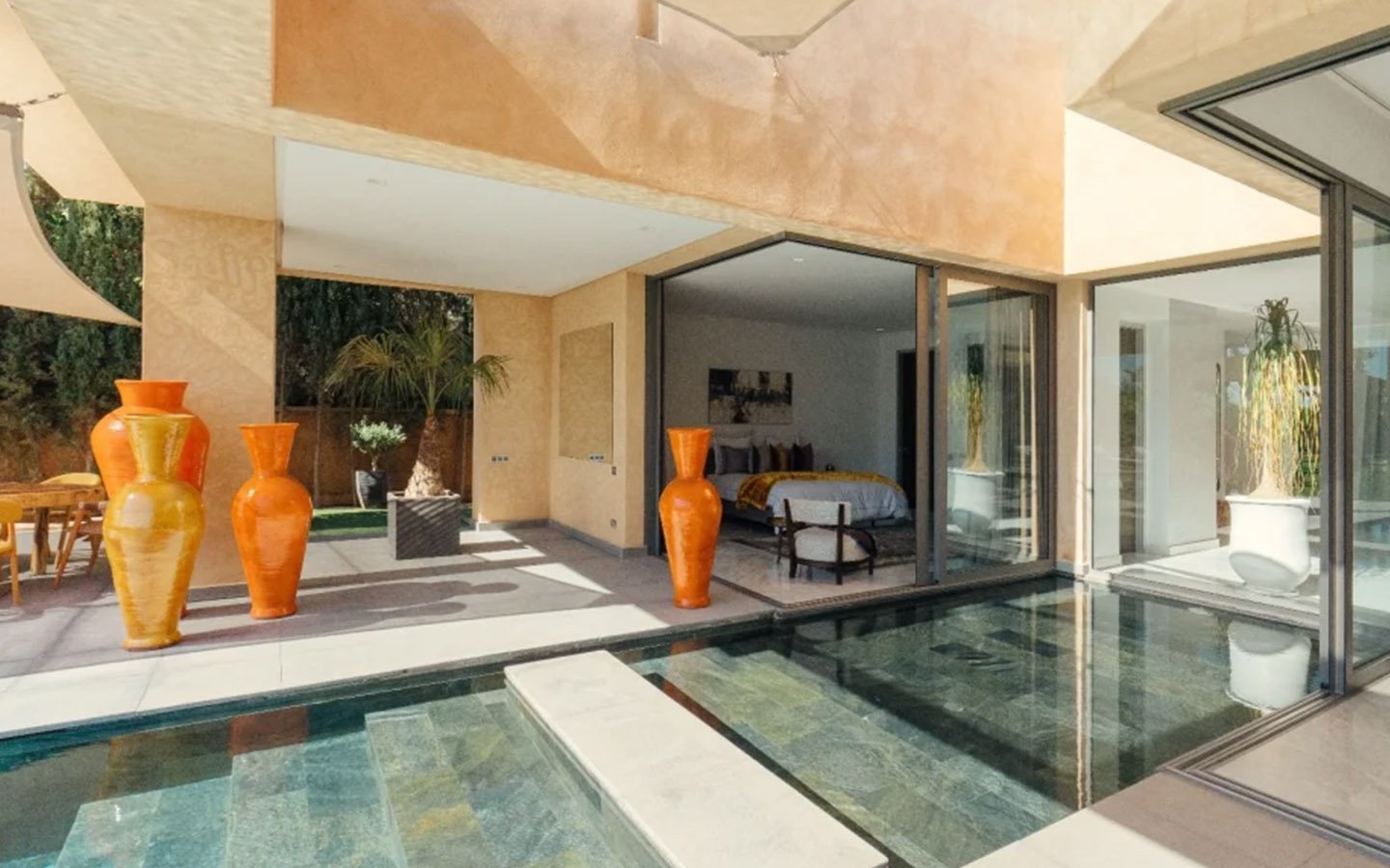 Perched facing the snow-capped peaks of the Atlas Mountains, with a lush 3800-square-meter garden and a renowned swimming pool, Villa Saphir stands out for its luxurious setting that subtly blends modernity and traditional “beldi” elegance. Its sand-colored, refined architecture offers a contemporary and refined living environment, conducive to a memorable stay filled with well-being and tranquility. The villa is equipped with high-speed fiber optic WiFi, central air conditioning, and 24/7 security, and features a large pool with a children’s area, a jacuzzi, a fitness room, and a spa area with a hammam for ultimate relaxation.