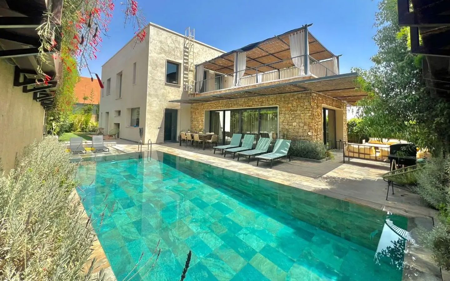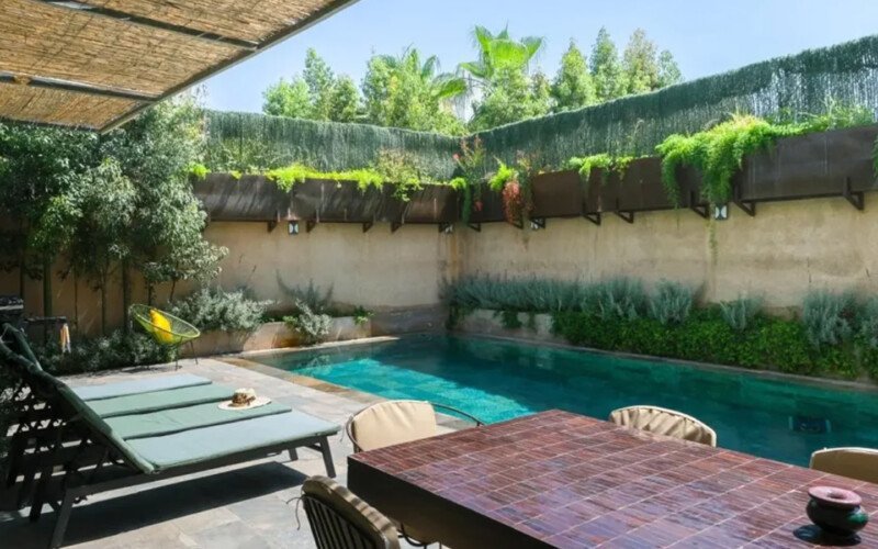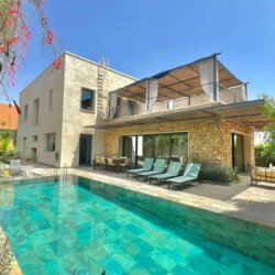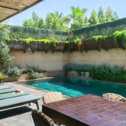 Élégante et contemporaine, Villa Syria s’impose comme l’une des plus belles adresses de Marrakech, alliant subtilement design moderne, confort haut de gamme et atmosphère de bien-être. Étendue sur 450 m², cette somptueuse propriété a été pensée pour offrir un séjour exceptionnel aux familles et groupes d’amis. Elle abrite quatre suites parentales, toutes dotées de dressings et salles de bain privées : deux au rez-de-chaussée avec terrasses intimistes, et deux à l’étage offrant de grandes terrasses panoramiques sur la nature environnante. Son vaste salon lumineux, ouvert sur la piscine à débordement, crée une harmonie parfaite entre intérieur et extérieur, tandis que la cuisine américaine équipée et la cuisine professionnelle en sous-sol permettent d’accueillir un chef privé ou des événements exclusifs. Véritable sanctuaire de détente, la villa dispose d’un hammam traditionnel, d’un sauna, d’une salle de sport privée, d’un espace massage, et même d’une salle de cinéma pour des soirées conviviales. À l’extérieur, la piscine scintillante, le salon de jardin et l’espace repas en plein air invitent à profiter pleinement du soleil et de la sérénité du lieu. Villa Syria se distingue par son raffinement, ses prestations 5 étoiles et son atmosphère apaisante, offrant un cadre idyllique pour des vacances luxueuses, une retraite bien-être ou un événement privé inoubliable au cœur de la ville ocre.