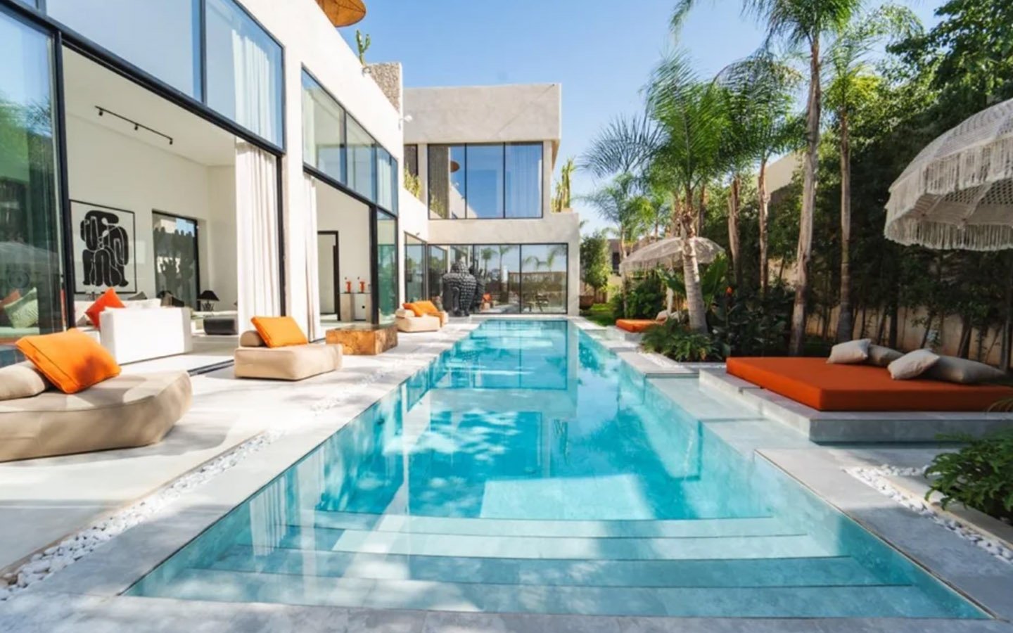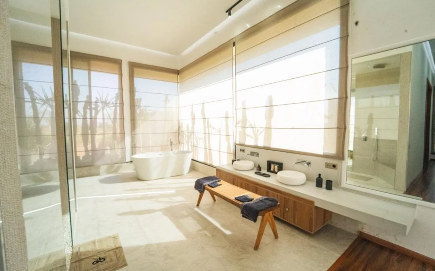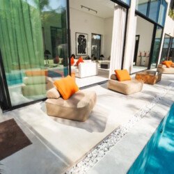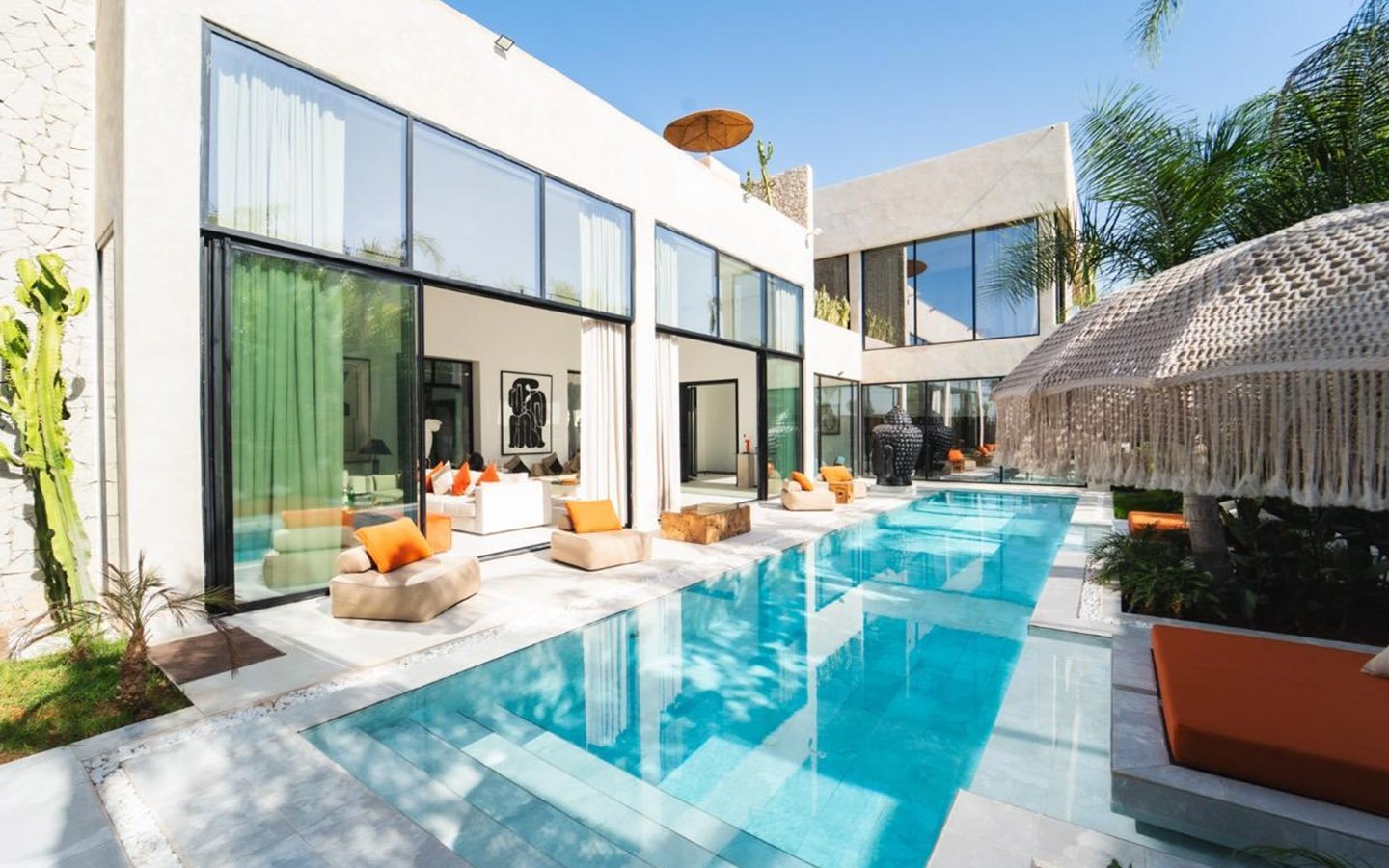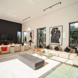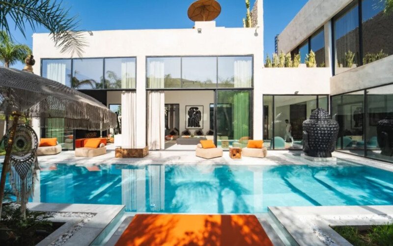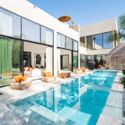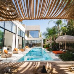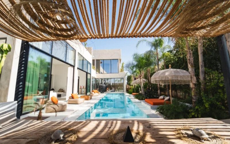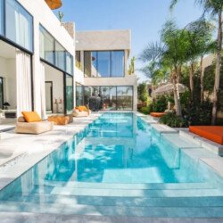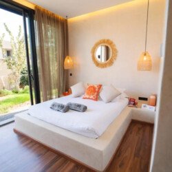 Villa Zenkiss is a prestigious residence nestled in the heart of an exceptionally peaceful environment, where serenity meets elegance for an exceptional stay. Its contemporary architecture, subtly inspired by Moroccan style, features purified lines and noble materials that harmonize with the surrounding nature, creating an immediate atmosphere of well-being. The vast landscaped garden, large heated swimming pool, and covered terraces are perfect for relaxation, while the four luxurious suites offer refined decoration blending local craftsmanship and contemporary touches, all complemented by inclusive high-end services like a private chef, butler, and daily housekeeping.