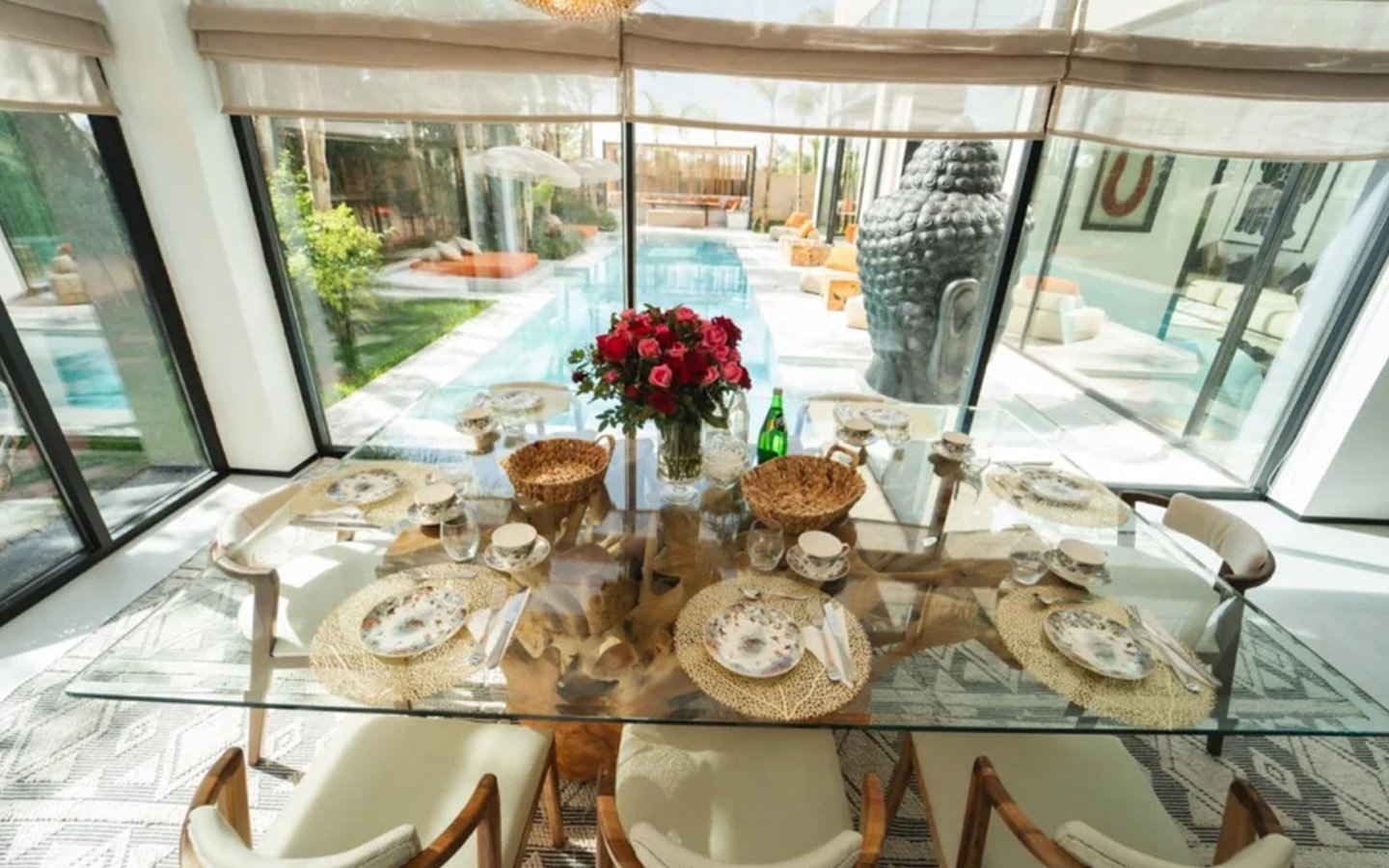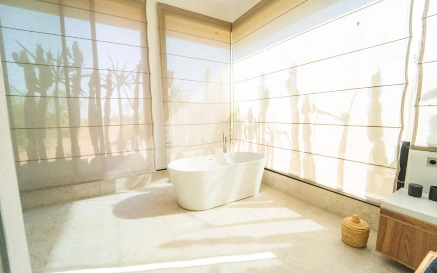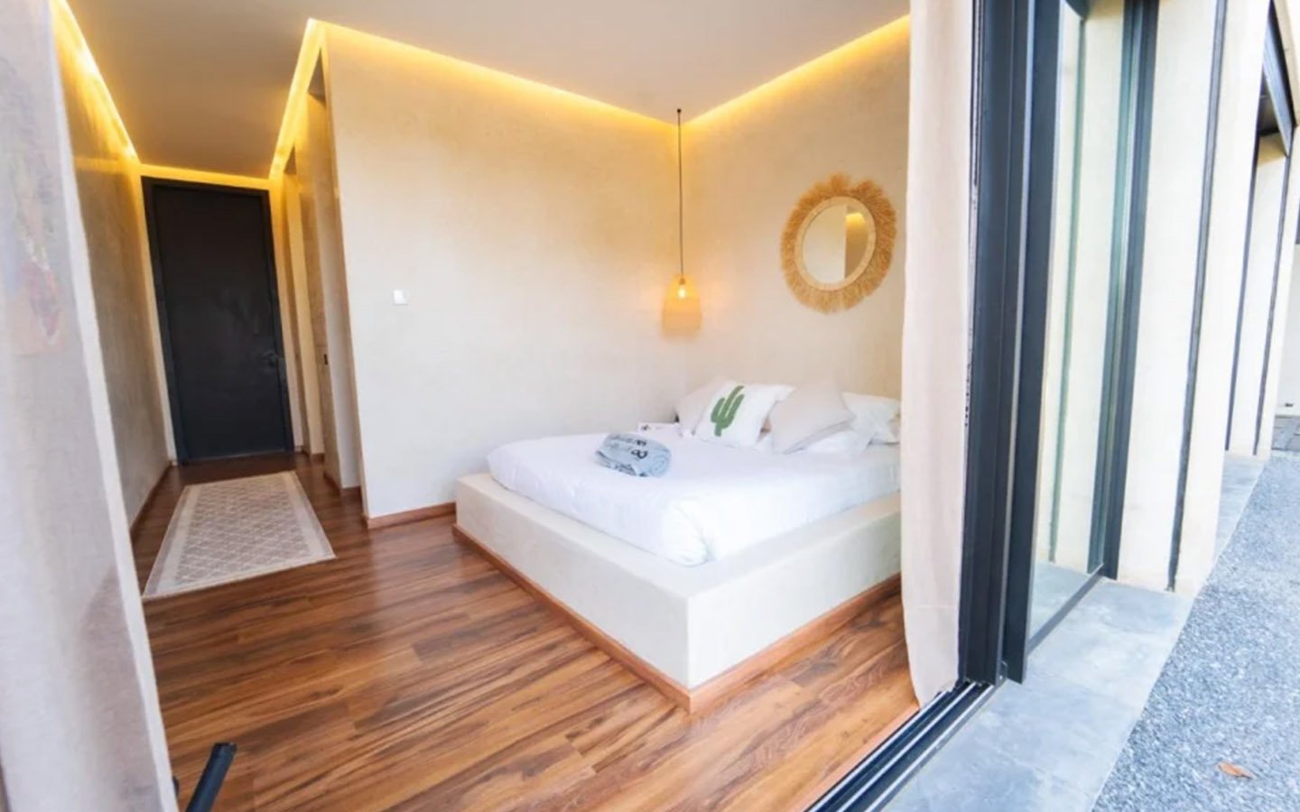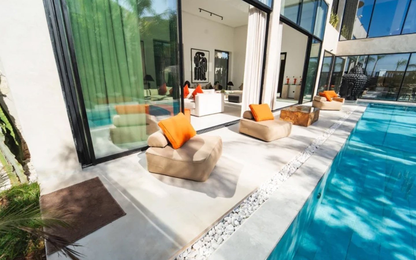 Villa Zenkiss is a prestigious residence nestled in the heart of an exceptionally peaceful environment, where serenity meets elegance for an exceptional stay. Its contemporary architecture, subtly inspired by Moroccan style, features purified lines and noble materials that harmonize with the surrounding nature, creating an immediate atmosphere of well-being. The vast landscaped garden, large heated swimming pool, and covered terraces are perfect for relaxation, while the four luxurious suites offer refined decoration blending local craftsmanship and contemporary touches, all complemented by inclusive high-end services like a private chef, butler, and daily housekeeping.
